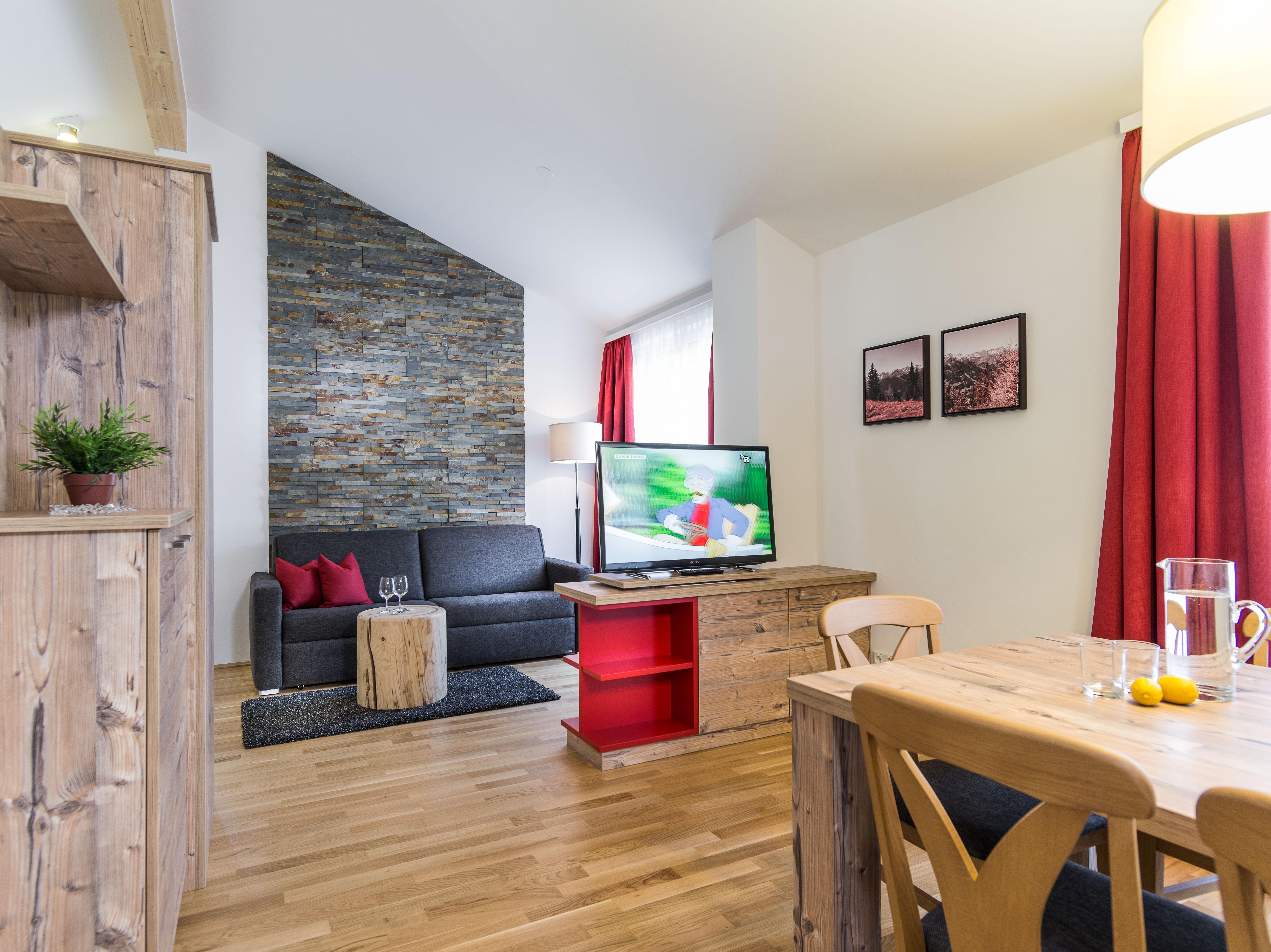 Where alpine lifestyle is not just a motto – opened in 2012, our five non-smoking apartments are characterised by their contemporary and stylish amenities. High-quality solid wood furniture and warm colours lend the 50 to 69m² apartments that are suited for 2-6 people a charming and individual character. On the first or the attic floor, you will enjoy unforgettable views of Gastein’s mountains when rising already. All our apartments come with a fully equipped kitchen allowing you to end active skiing and hiking days with a self-made dinner. 365 days of relaxation – the south-oriented terraces offer retreats when spending your vacation in the Gasteinertal. The spa&wellness area with sauna, relax and fitness area rounds off the concept. Even holidays with pets are permitted on request.