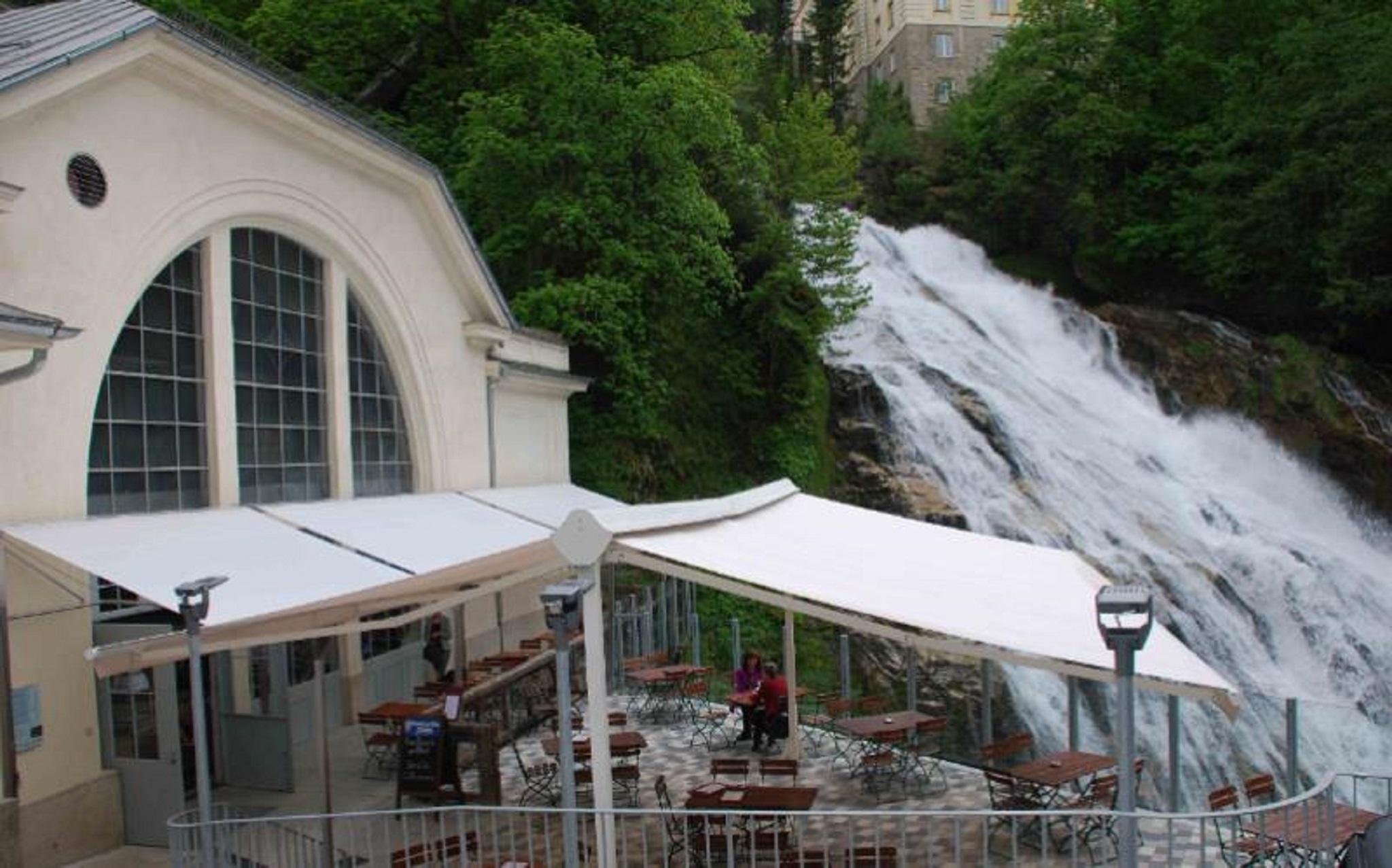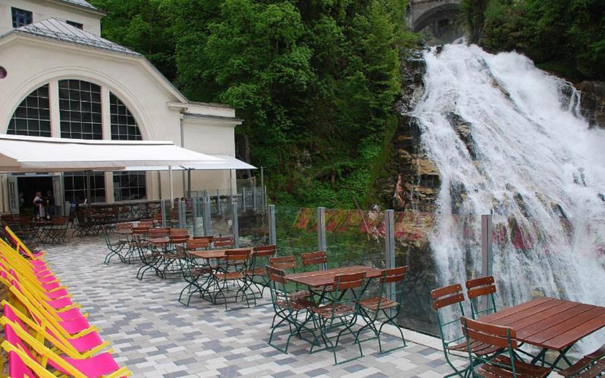 The restaurant in the power plant, which was newly opened in May 2016, offers a very special ambience in a unique location: situated at 985 m above sea level, directly at the foot of the mighty Bad Gastein waterfall!