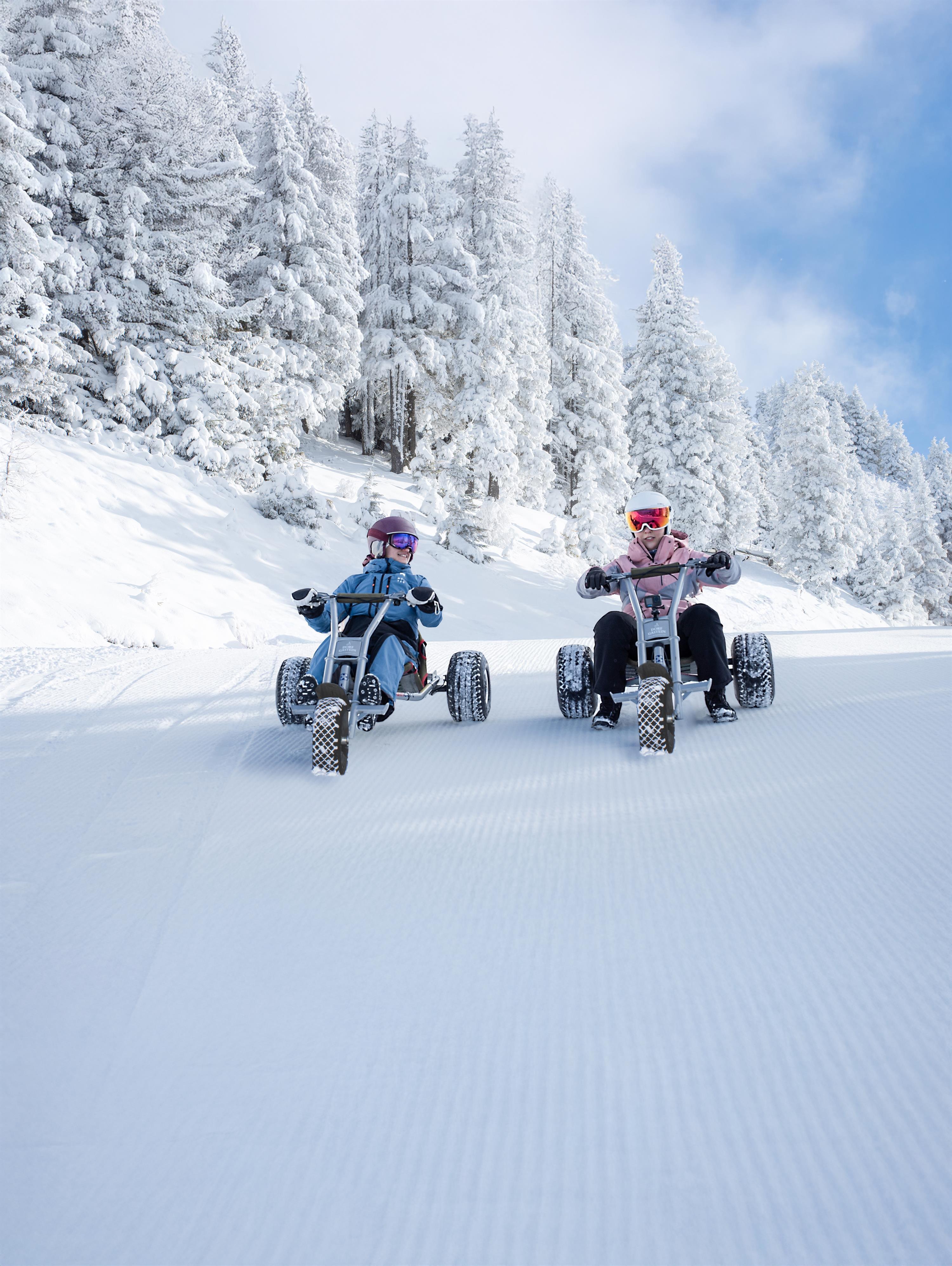 Procedure: Meeting point at 7.30 am at the valley station of the Gipfelbahn - Fulseck cable car. After the welcome, the group will take the summit lift up the mountain together. There, the mountain carts are handed out and a short briefing is given. Then the descent begins in the group. The safe, early morning fun on the piste is accompanied by a mountain railway employee. Depending on the weather and piste conditions, the route (piste) will be decided the evening before. Early Winter Moutaincart is fun on the piste on three wheels over prepared pistes before the regular ski operation. The carts cover around 500 metres in altitude on one descent.
