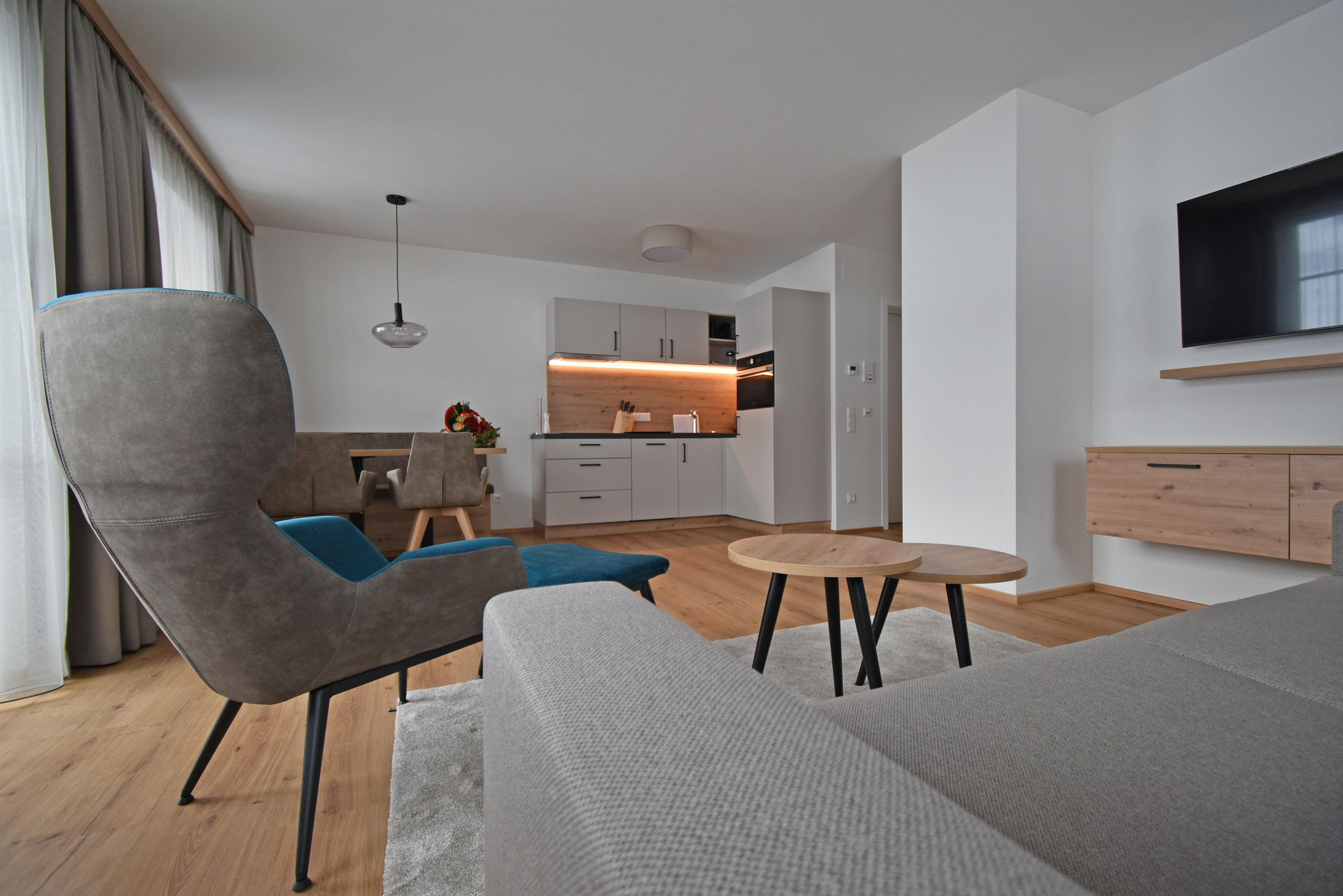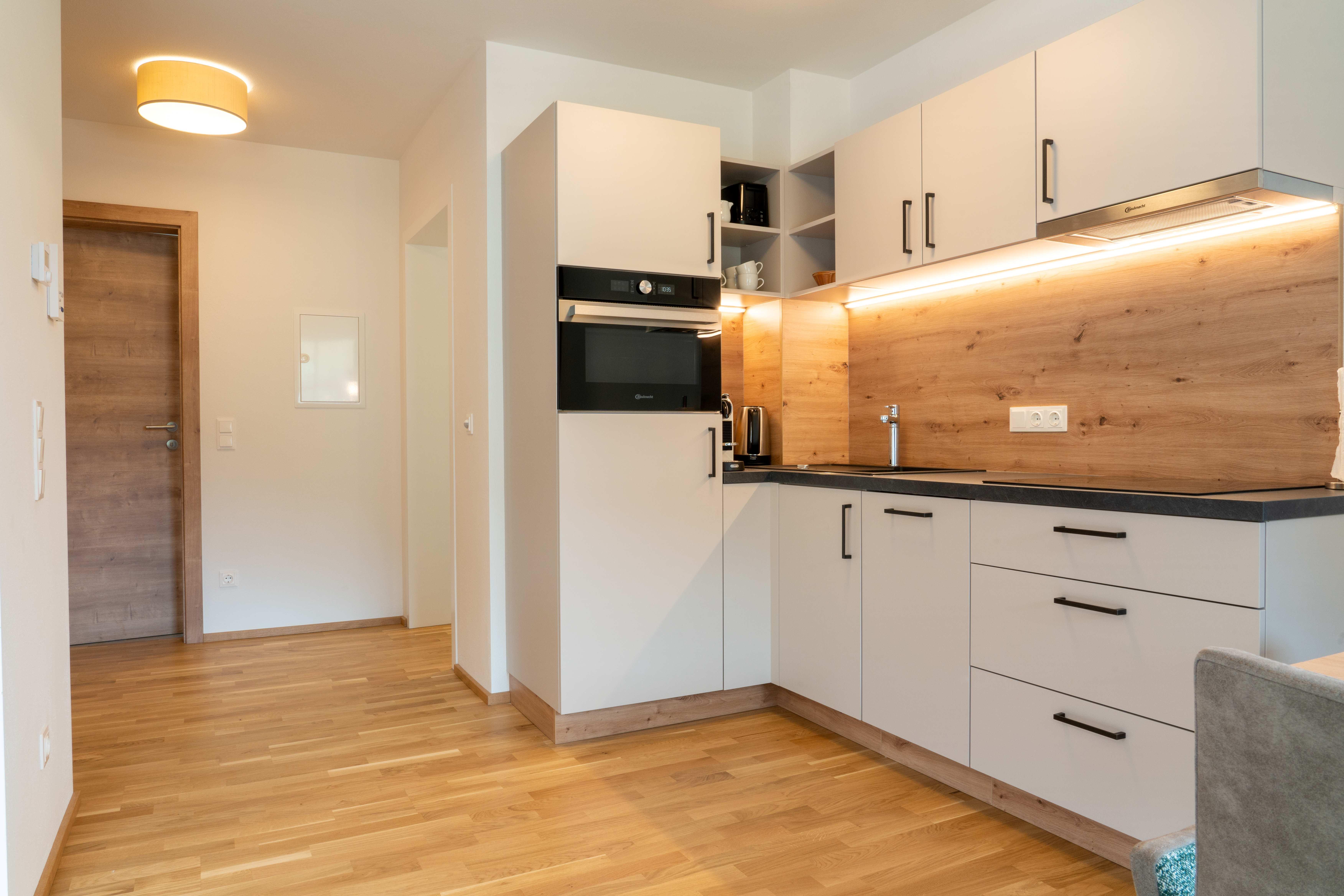 - Brand new, top-equipped holiday apartments for 1 - 6 people with a kitchen-living room including a "kitchen kit", 1-2 bedrooms with high-quality "Voglauer" beds including bed linen, 1-2 bathrooms including towels and a hairdryer as well as modern amenities such as smart TV in every room, WiFi, dishwasher, refrigerator with freezer compartment, oven with microwave function and much more.
