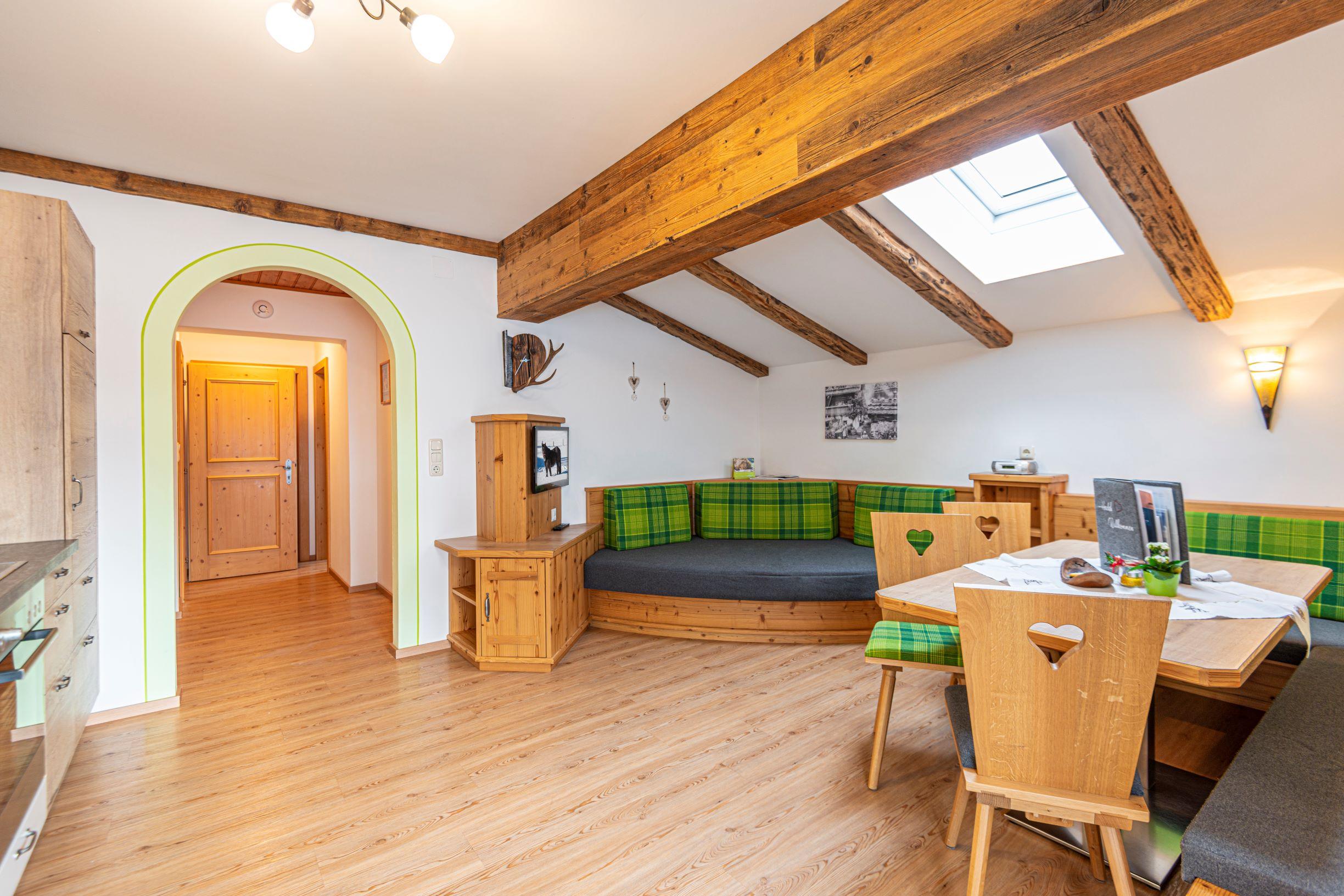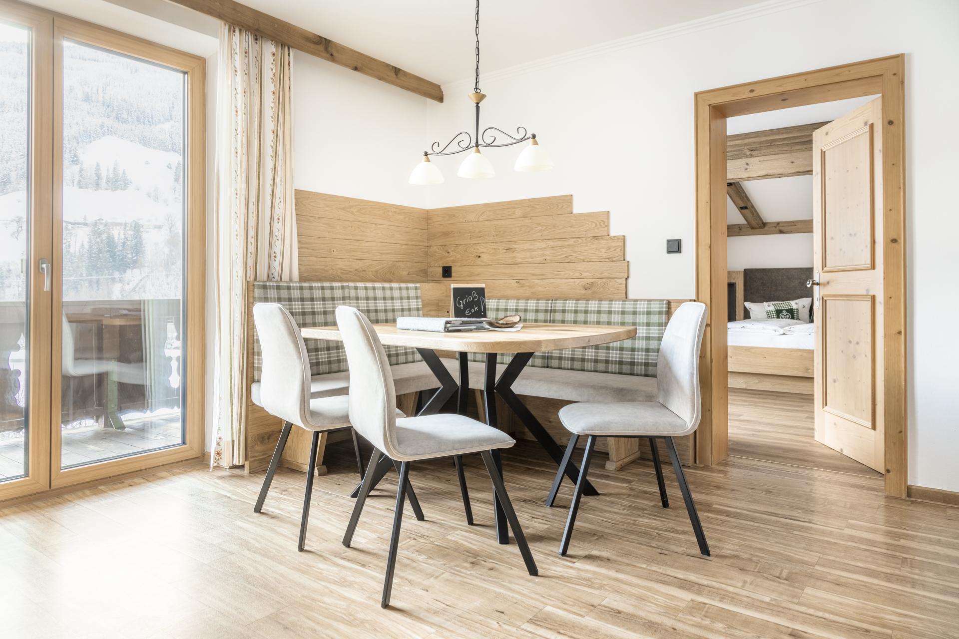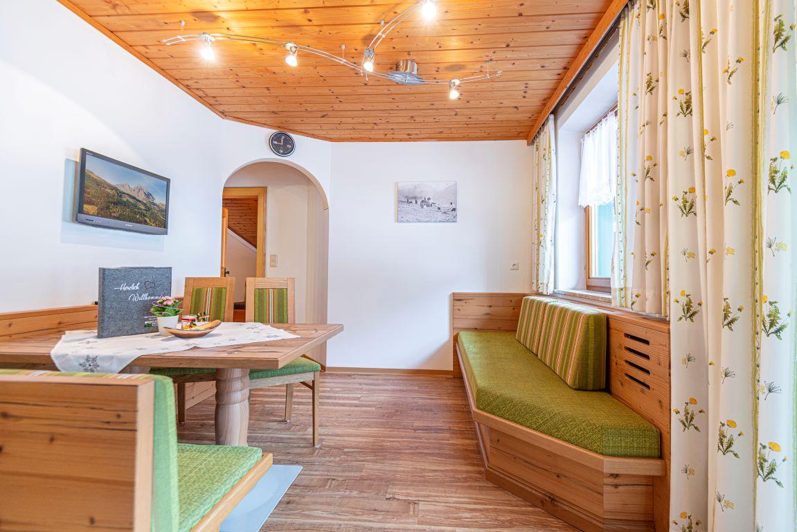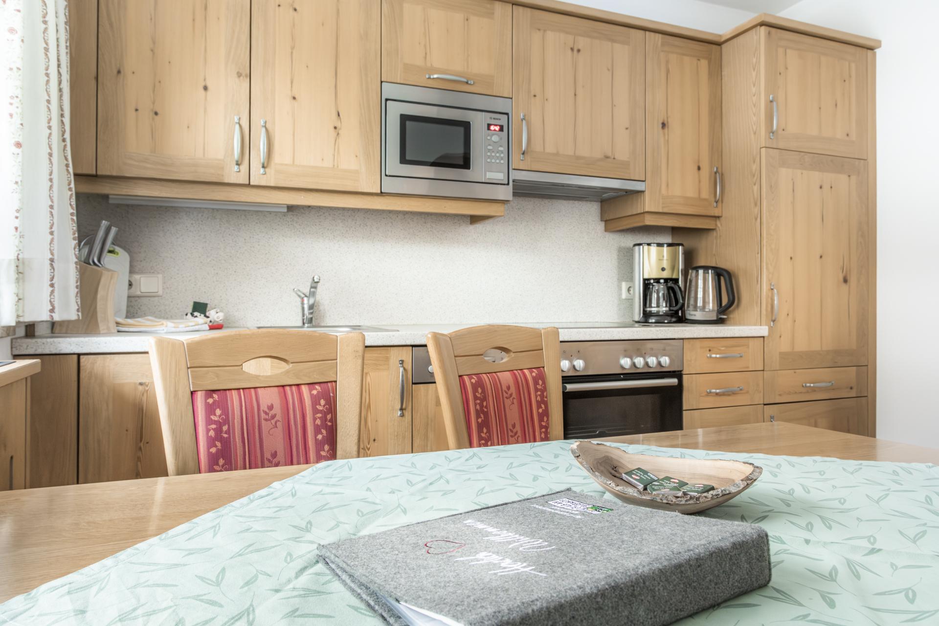 Whether family vacation in the holiday apartment or partner recreation in the double room – the Moarbauer farm offers matching accommodation to everyone. Our four 50-60m² apartments with special children's rooms offer space for 2-6 people. Furnished with lots wood and love for detail, you will already feel at home here when first entering. Dishwasher, microwave, stove, baking oven, kettle and coffee machine round off the comfort of the apartment kitchens. During your partner vacation a stay in our bright and generous rooms that come with a cosy sitting corner, a new bathroom, and cable TV as well as with a balcony is recommended.