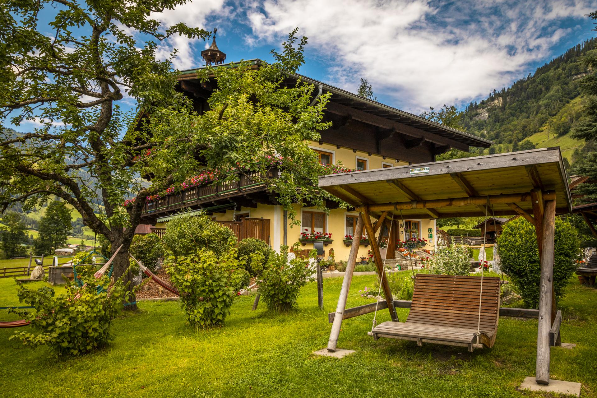 Our organic Moarbauer farm is situated in the hamlet of Maierhofen, about 10 minutes away from Dorfgastein. Start your hike right from the accommodation on numerous hiking trails that lead right past our farm. The centre of Dorfgastein with the popular solar bath, as well as the Dorfgastein Großarl skiing area can be reached within 4 minutes by car, while the Alpentherme thermal spa and the centre of Bad Hofgastein are only 10 minutes away.
