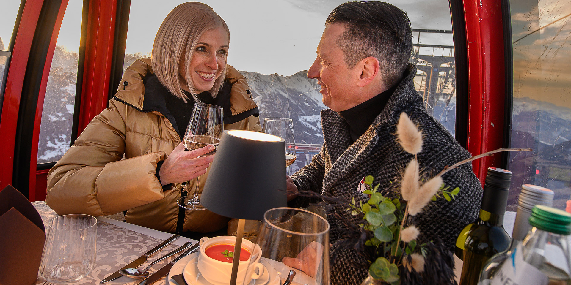 Beim Gondeldinner fahren Sie mit der Gipfelbahn - Fulseck durch die nächtliche Bergidylle, während Ihnen ein herrliches 4 Gänge Menü serviert wird.