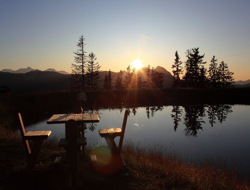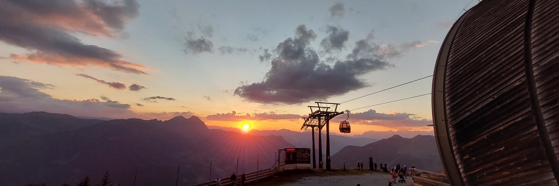 When nature comes to rest at 2033 meters in the evening, the setting sun envelops the surrounding mountains in a very special light. On 7 Tuesday evenings in summer, you can experience this colorful spectacle up close. The Gipfelbahn-Fulseck cable car takes you safely up the mountain and back down to the valley every Tuesday from July 15 to August 26 from 6 pm to 10 pm.