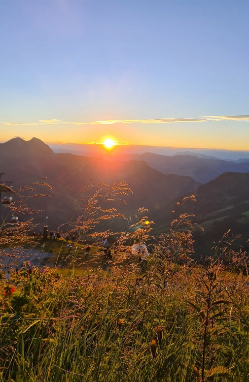 The atmosphere during these hours on the mountain ridge between Wolke 7 in the north and the Kreuzkogel in the south is incredibly relaxing and calming. From the “Dachsteinblick” viewing platform, you can see the play of colors from afar.
