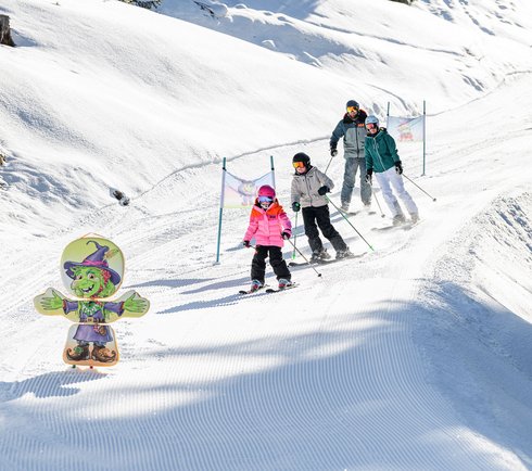 More experienced children can use the Gipfelbahn Fulseck cable car, which reliably transports them up the mountain to the Dorfgastein – Großarltal ski area. At the top, a family-friendly run (“Familienabfahrt”) starts, winding its way down to the middle station. For a bit of extra fun and thrill, you can also give the Funline a try. This special ski run features sections with witches, dwarves, tunnels and a slalom course.