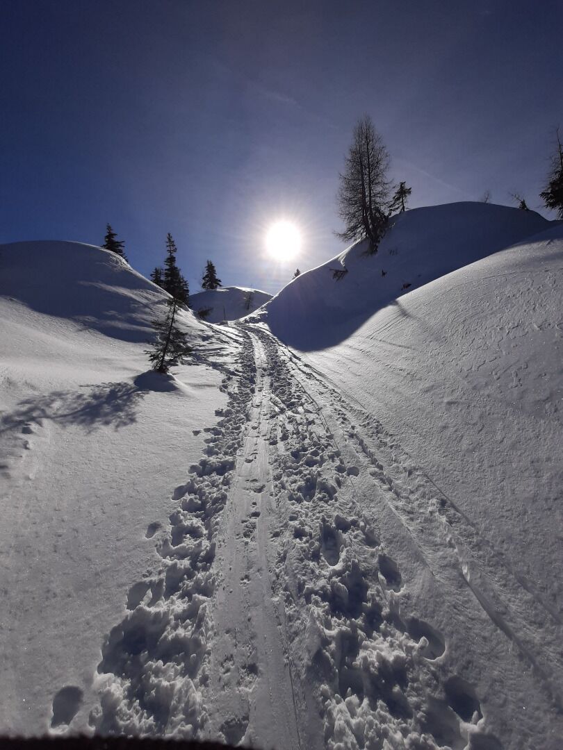 The mountain adventure begins right in Dorfgastein, as the Fulseck summit lift takes you comfortably to the middle station. From there, you first take the D1c and then continue on the D8 Gruberwaldweg family run. After about one kilometre, there is a well-signposted junction where the ski touring route starts uphill. From here, the route climbs up to the Heumoosalm and continues towards Arltörl, where the famous chapel invites you to take a short break and pause for a moment.