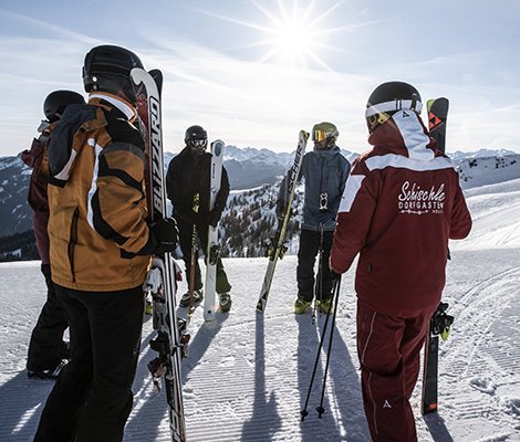 Dorfgastein, der erste Ort des Tals, bietet zahlreiche Pisten auf der Skischaukel Dorfgastein-Großarltal. Skipisten, so weit das Auge reicht.