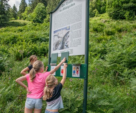 Märchenwanderung in Gastein: Zehn Schautafeln geben Ausblicke und Einblicke in den reichen Fundus der Gasteiner Sagenwelt. Auf einem abwechslungsreichen, idyllischen Wanderweg tauchen Sie in die Geheimnisse des Tales ein. Vielleicht erkennen Sie den ein oder anderen Originalschauplatz aus den Sagentafeln entlang des Weges? Starten Sie diese spannende Wanderung entweder beim Gasthof Burgblick, nahe dem Klammsteintunnel oder beim Gasthof Unterbergerwirt im Dorfgasteiner Ortsteil Unterberg.