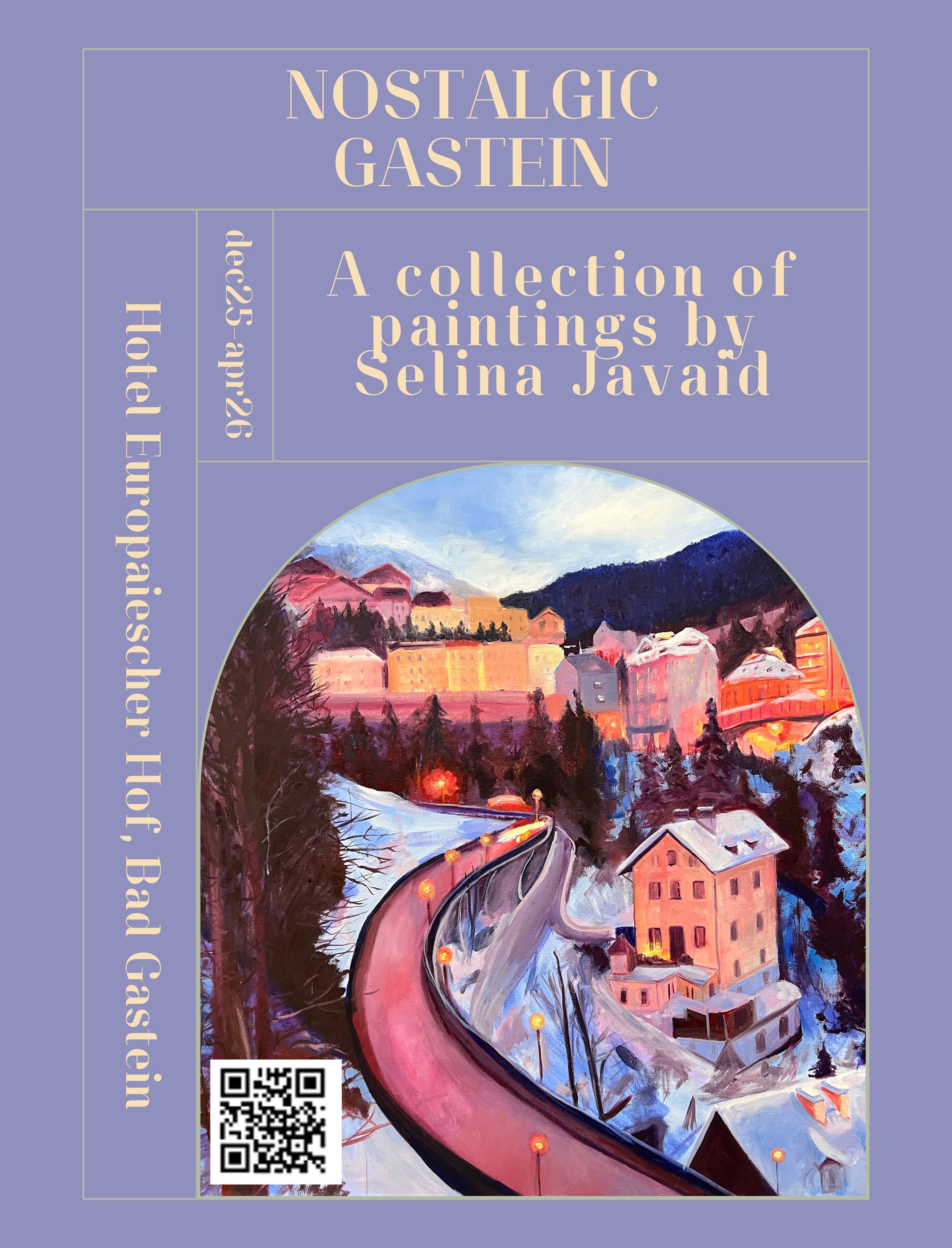 Mein Name ist Selina Javaid, ich bin Künstlerin und Pädagogin. Meine Mutter ist Österreicherin, sie wurde in Bad Gastein geboren, und meine Großmutter, Linde Egger, lebt noch immer in Bad Bruck. Wir besuchen sie jeden Sommer und Winter. Meine schönsten Erinnerungen sind mit Gastein verbunden. Jetzt bringe ich auch meine eigene Familie jedes Jahr mit. Es ist mein Traum, meine Bilder in Bad Gastein auszustellen, da ich dort viel Inspiration finde.