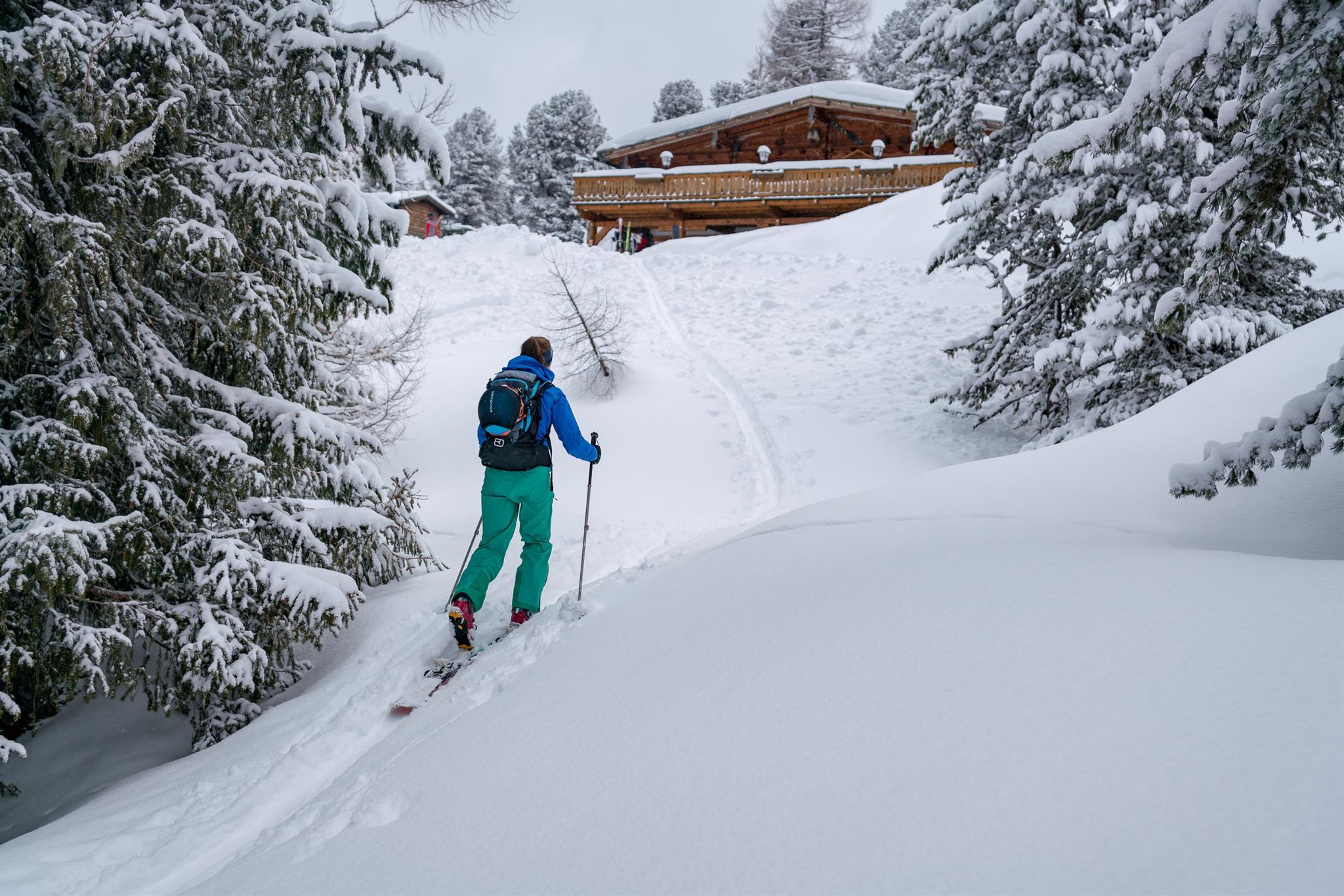Der Aufstieg ist ca. 700 hm, leichtes Gelände, Abfahrt über die Piste. Aufstiegsdauer ca. 2 Stunden, zurück ins Tal geht es entweder auf der Piste oder durch Tiefschneehänge, die leicht zu bewältigen sind.