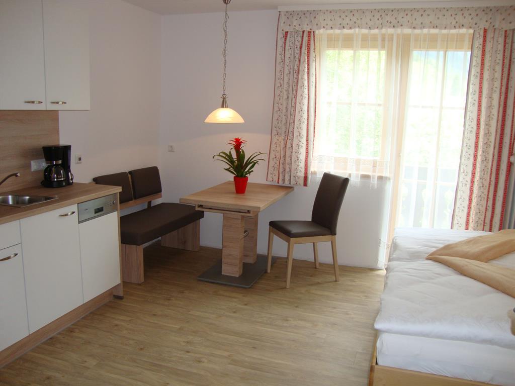 Experience the soothing effect of the pine wood interior when stay in the Apartment No. 2. Our third apartment – the Rebhan guest house – is situated in Böckstein and characterised by its direct proximity to the Elisabethpromenade as well as to Gastein’s radon gallery. Here, you can spend your vacation in a 56m2 apartment with a kitchen, 2 bedrooms and a large terrace as well as a balcony.