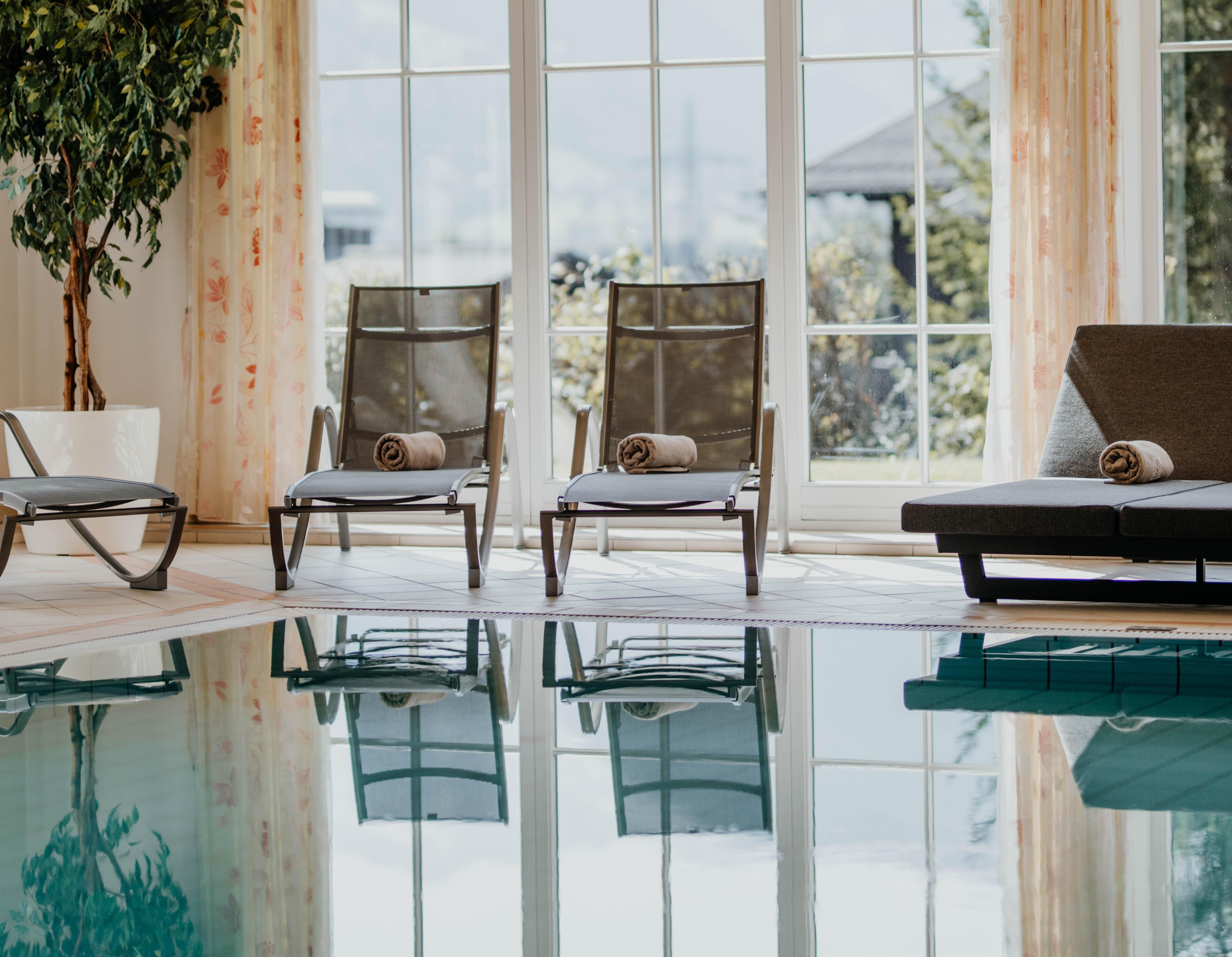 In our in-house, 850m² wellness area, everything your heart desires awaits you. Let yourself be pampered with muscle-relieving massages and relax in our sauna area, the steam baths or in our panoramic indoor pool with adjacent sunbathing lawn.