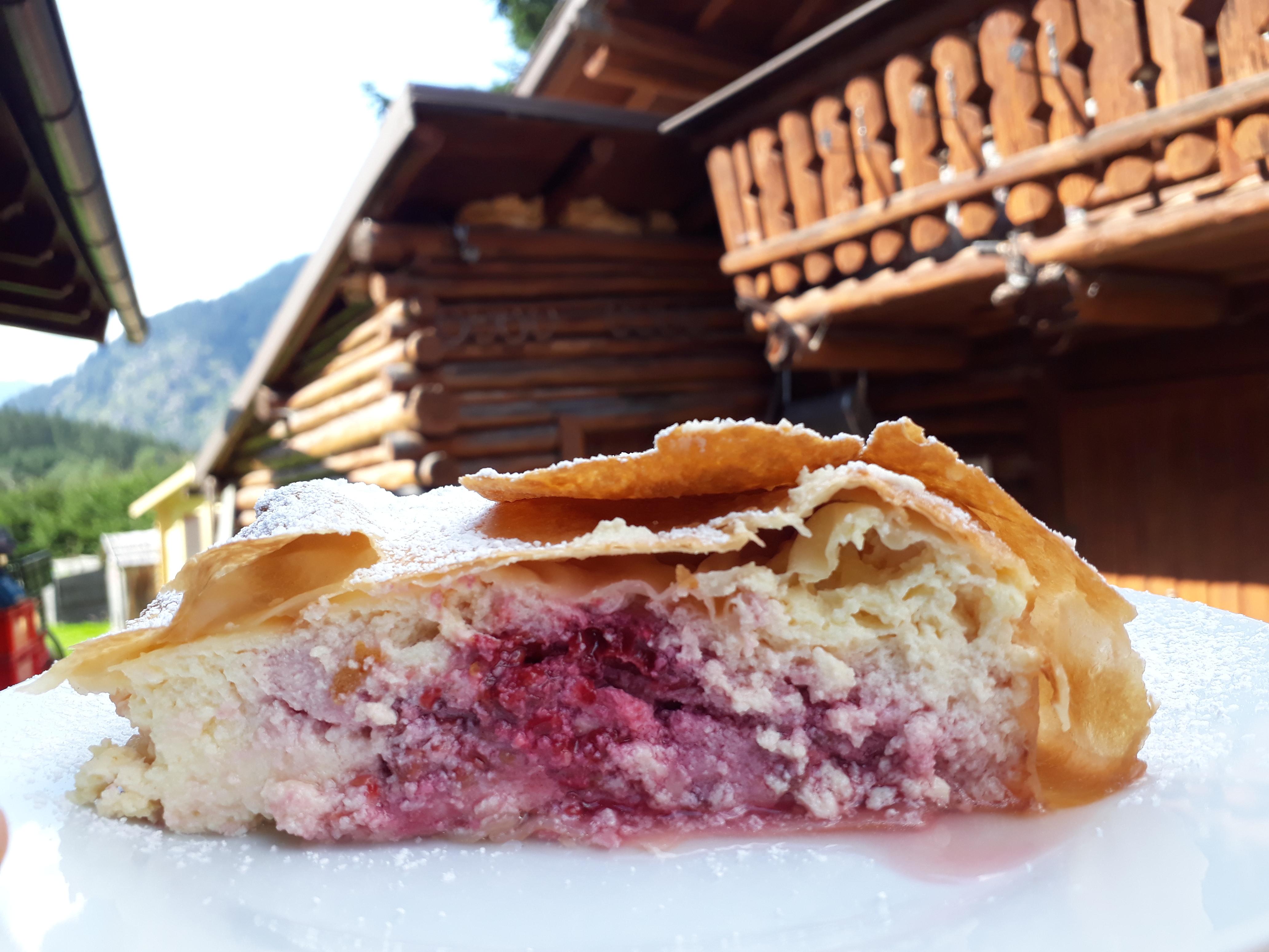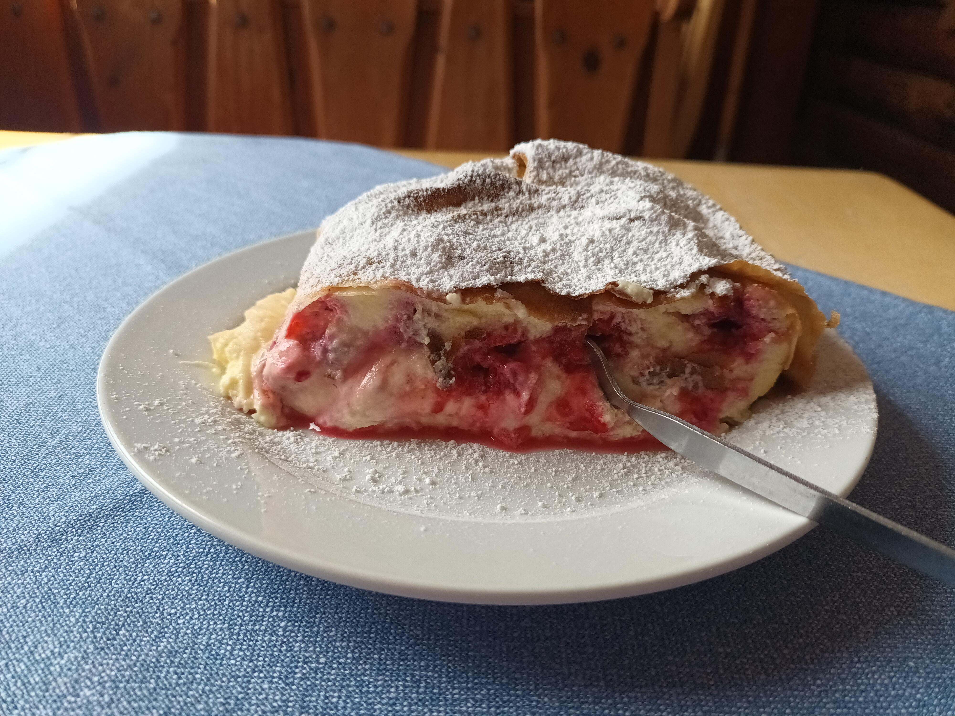 Curd-raspberry strudel