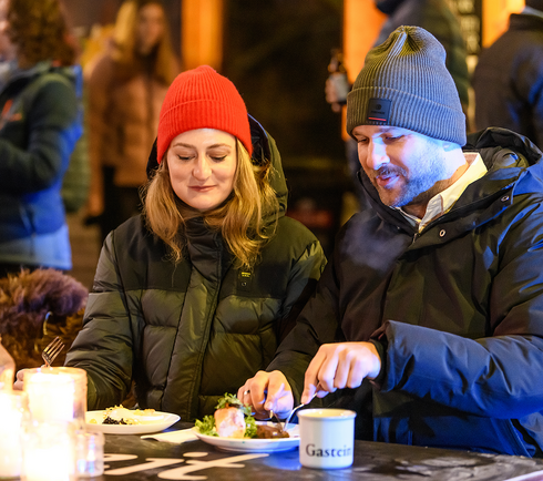 Apropos Ski: In Gastein lässt sich Kulinarik wunderbar mit Wintersport verbinden, zum Beispiel beim Early Morning Skiing Schlossalm und Stubnerkogel mit Frühstück, beim Gipfelfrühstück in Sportgastein, beim Gondeldinner oder im Rahmen der Kulinarischen Winterreise auf Schneeschuhen. Alle, die es gemütlicher angehen wollen, können die Leckerbissen der Region auch beim Vollmond-Dinner oder beim Markt:Abend unter freiem Himmel genießen.