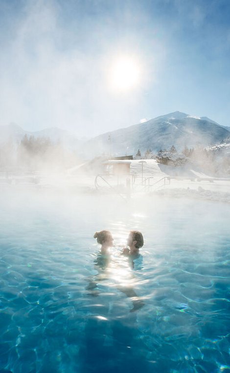 Nach einem ereignisreichen Tag im Schnee heißt es dann: abtauchen und regenerieren. In der Alpentherme und der Felsentherme machen Panoramabecken, Saunawelten und Relaxzonen das Wellnessen zum krönenden Tagesabschluss.