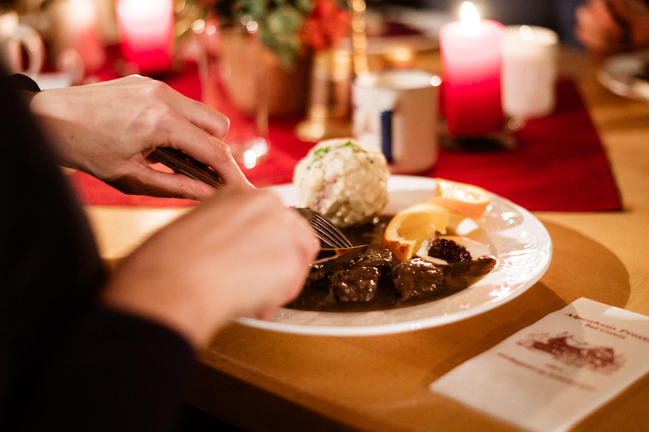 The tour continues by horse drawn sleighs through the snow covered landscape to Alpenhaus Prossau. Seasonal delicacies will be served as main dish. A dessert will spice up the evening before the horse sleighs will bring you back to the starting point.