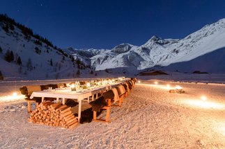 Enjoy a 5-course menu including 5 beverages from regional products under the sky and watch the full moon rise above the mountain peaks - illuminating the snow covered valley.