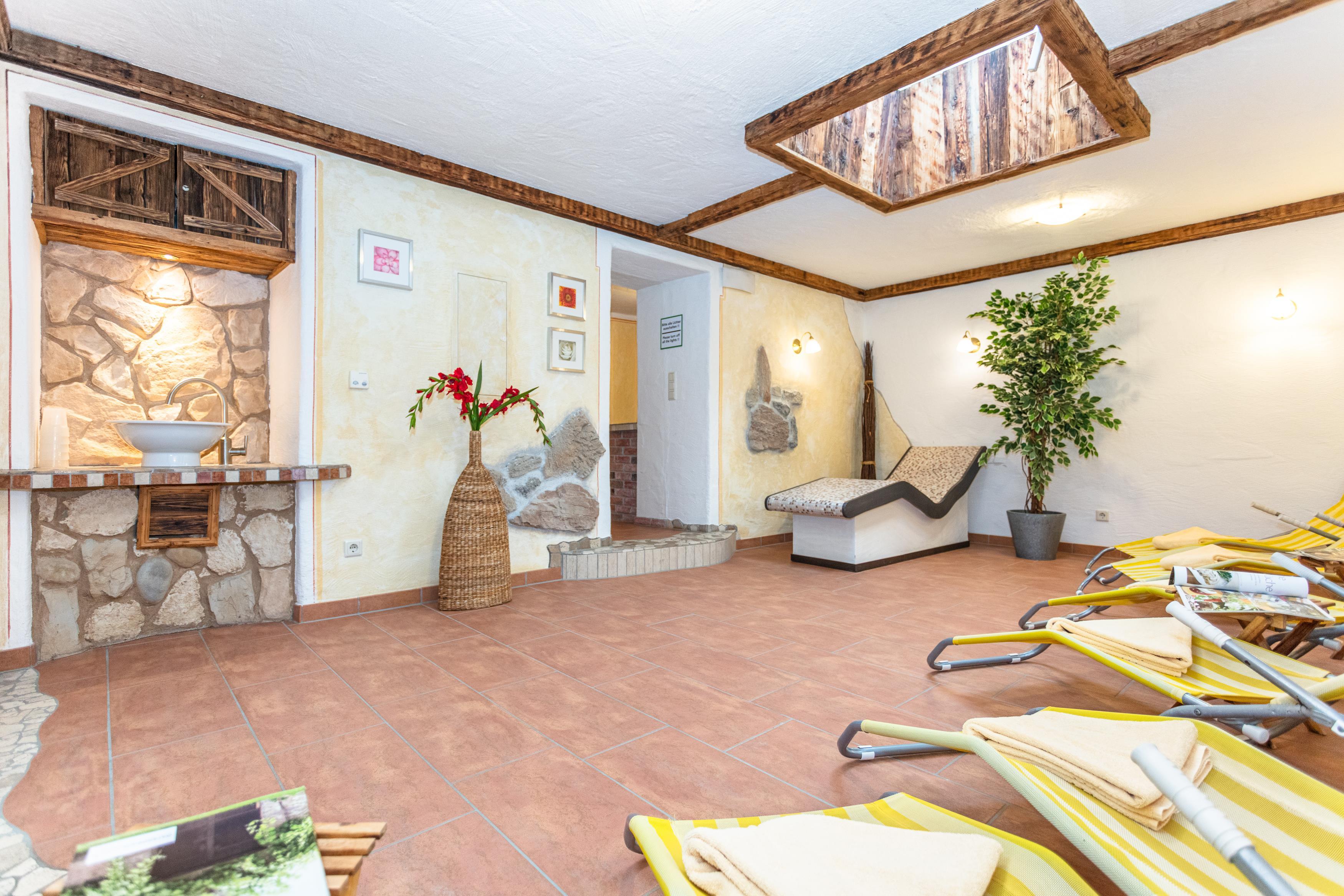 Entspannung pur finden Sie in unserer hauseigenen Wellnessanlage mit Finnischer Sauna, Dampfsauna, Infrarotkabine sowie dem großen Ruheraum. Für unsere Kinder haben wir einen Indoor-Tischtennistisch.