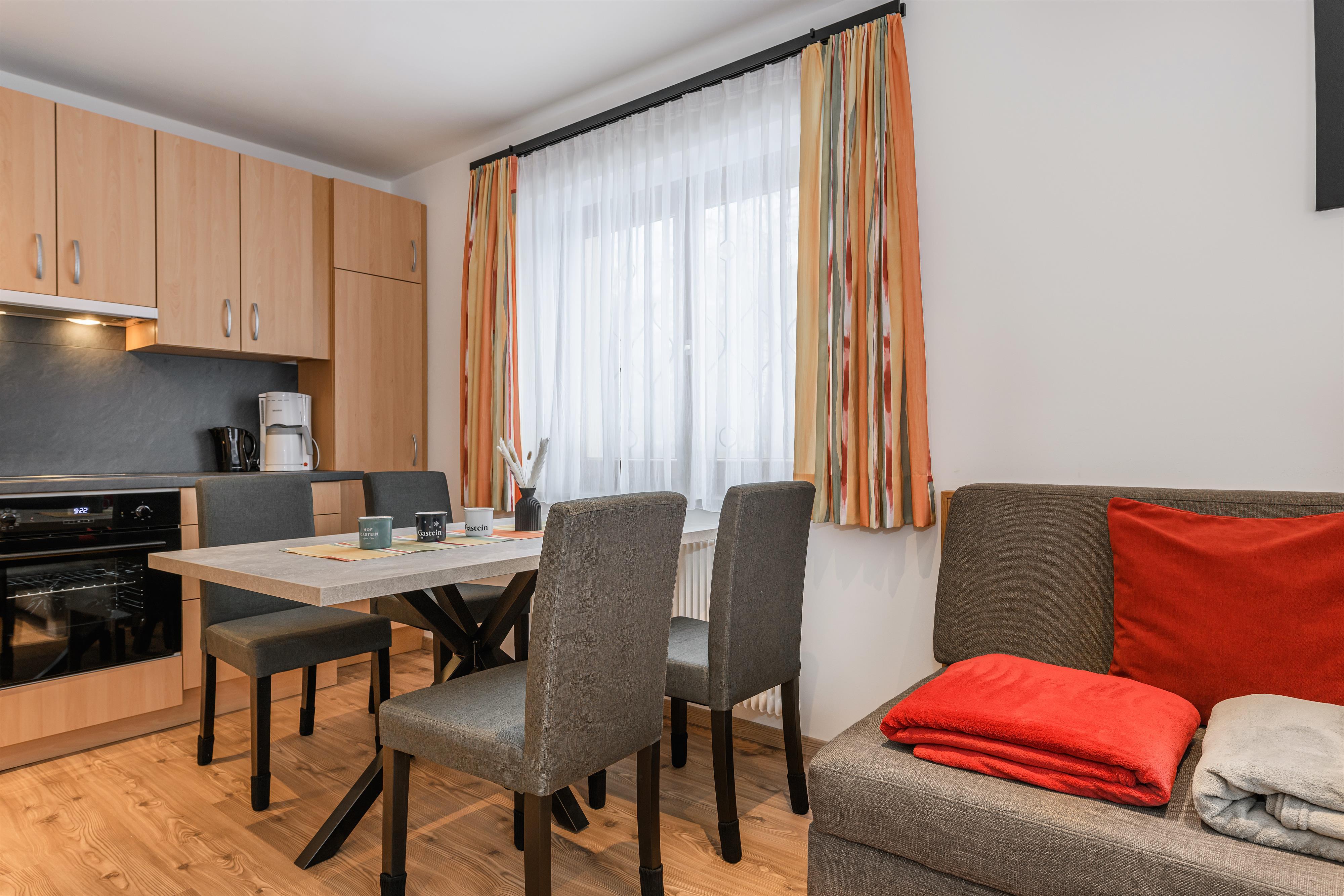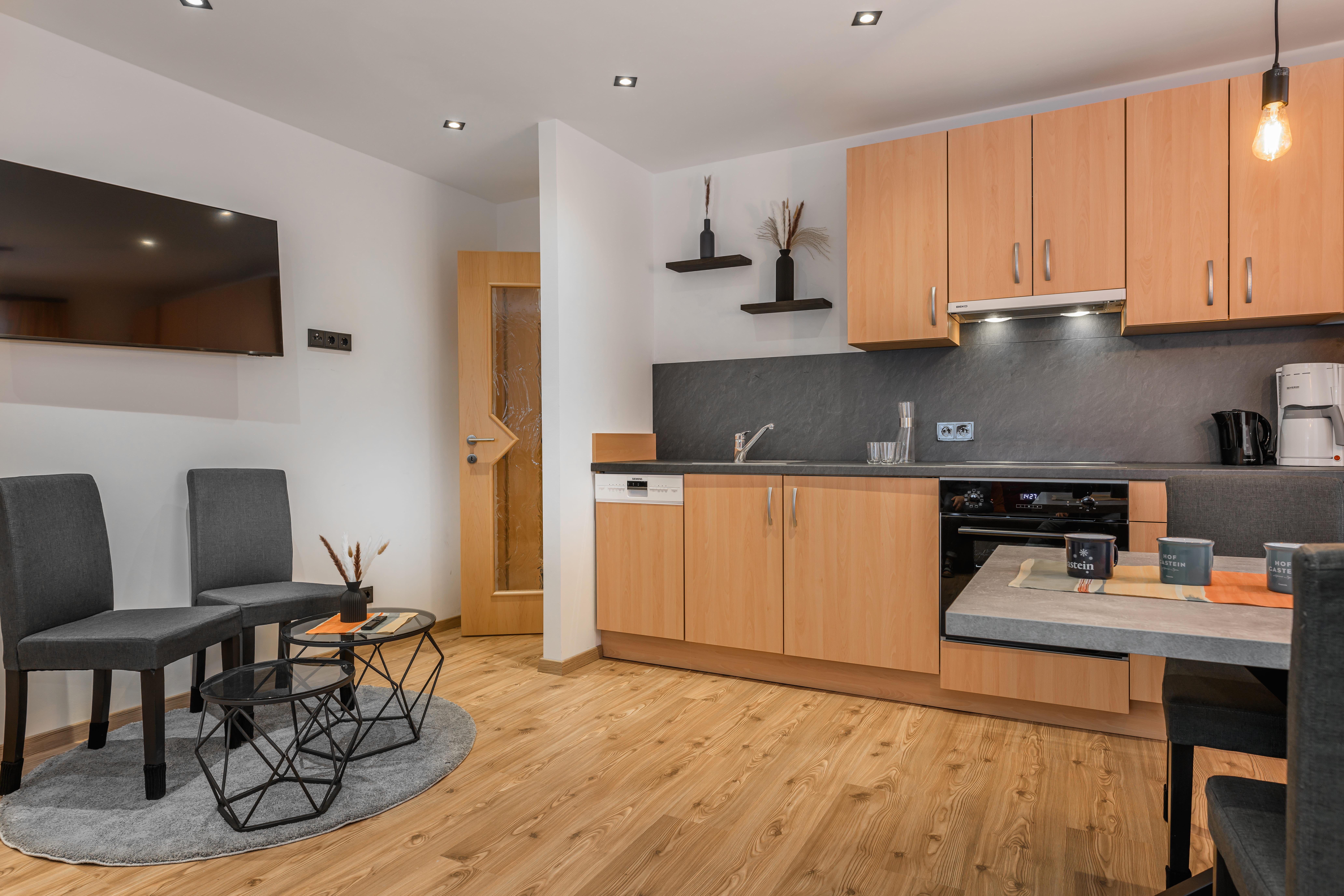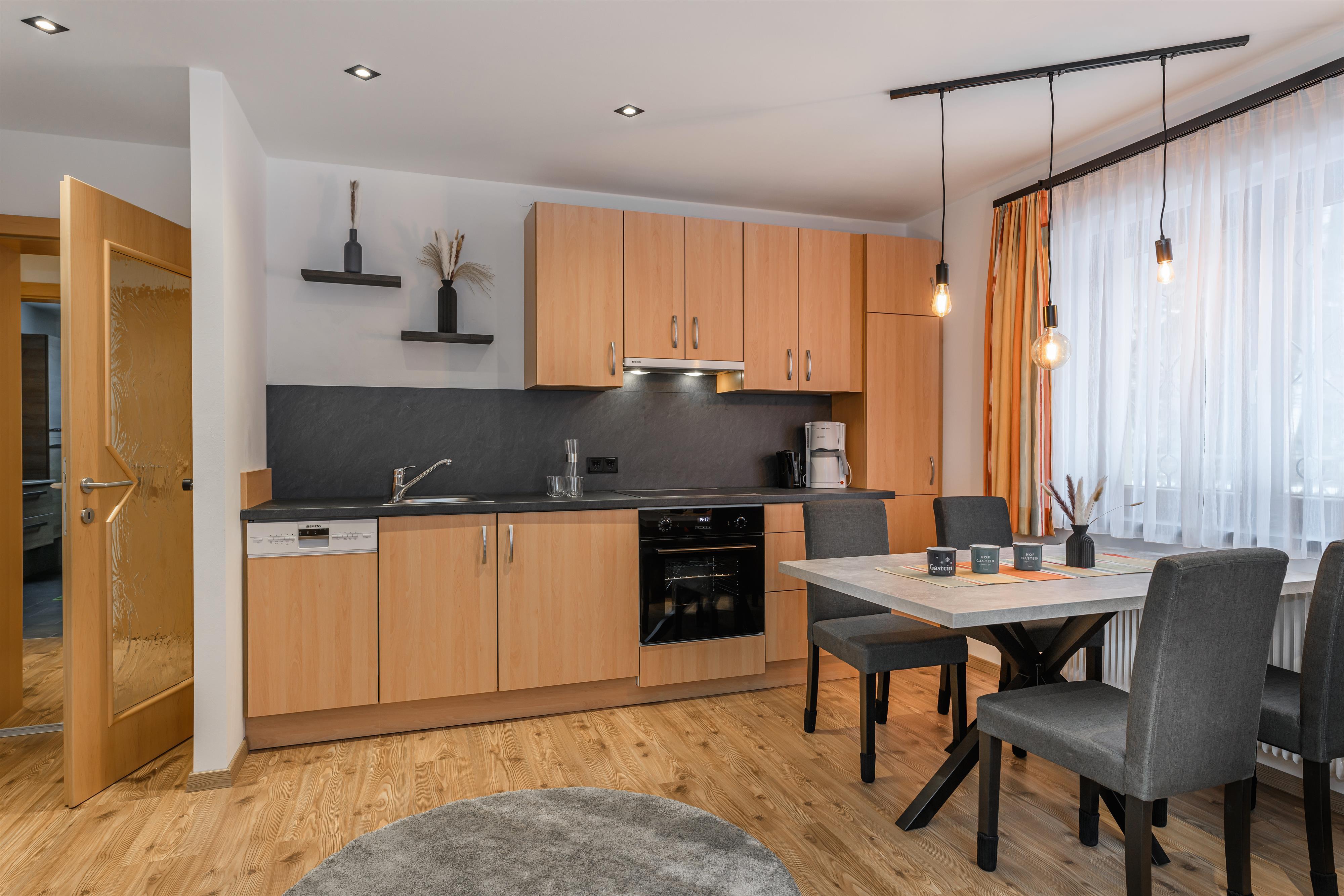 Nasz apartament jest idealny na relaksujące wakacje, zarówno na tydzień, jak i dłuższy pobyt do miesiąca. Ciesz się spokojną lokalizacją w zieleni Bad Hofgastein, blisko Alpentherme i kolejki Schlossalmbahn. Na około 60 m² czekają na Ciebie dwie przytulne sypialnie, przestronna kuchnia z jadalnią oraz nowoczesna łazienka z WC.