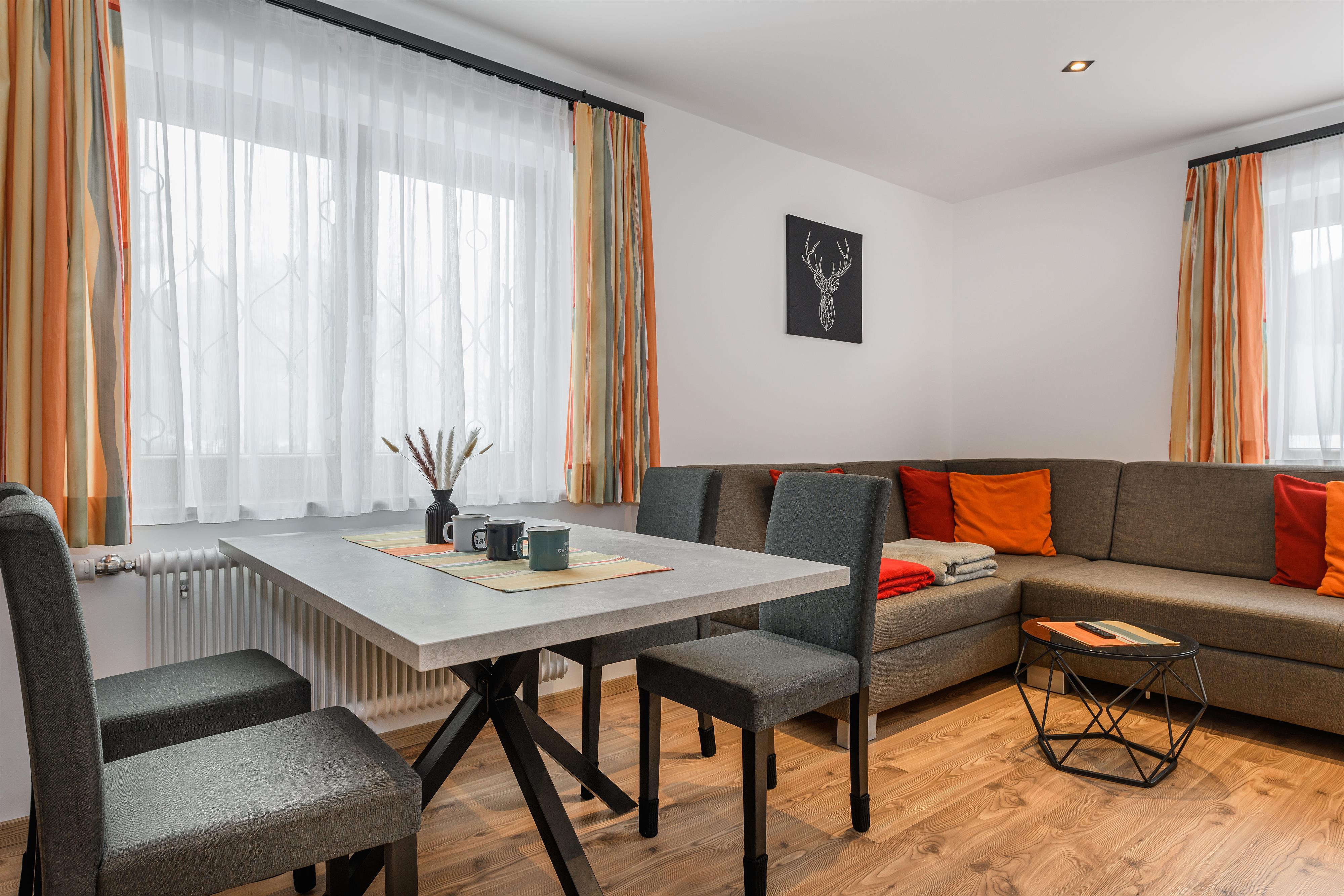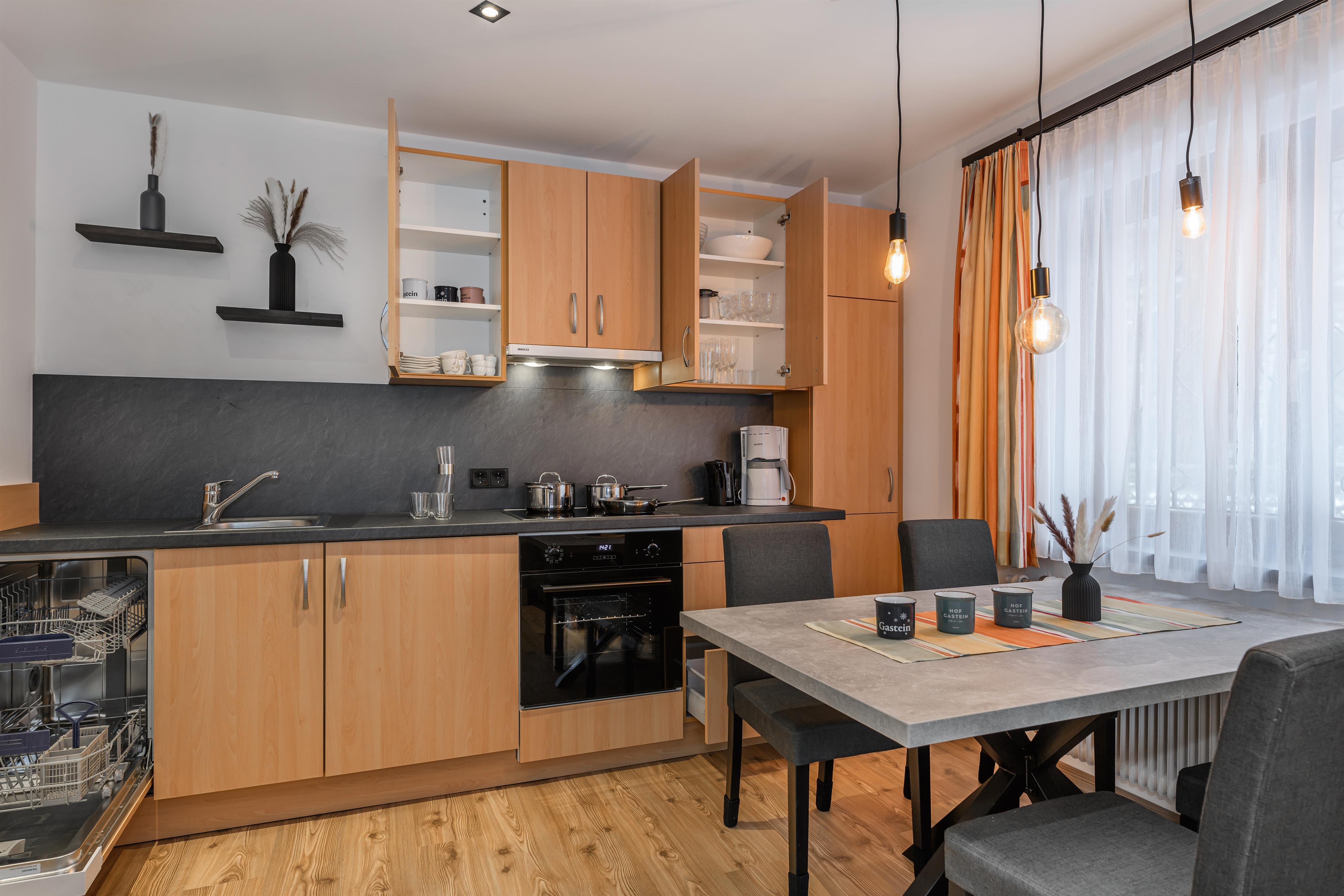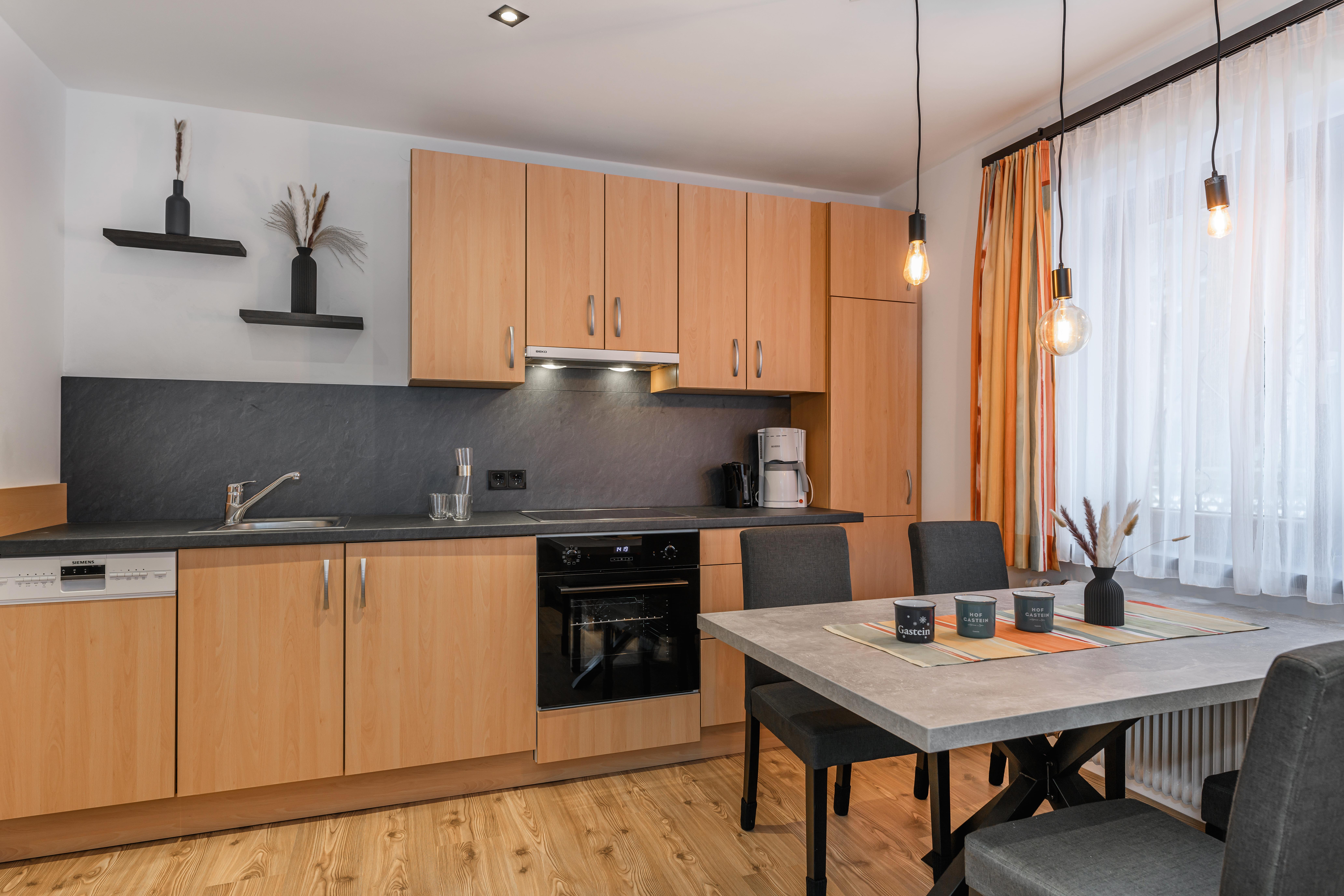 Nasz apartament jest idealny na relaksujące wakacje, zarówno na tydzień, jak i dłuższy pobyt do miesiąca. Ciesz się spokojną lokalizacją w zieleni Bad Hofgastein, blisko Alpentherme i kolejki Schlossalmbahn. Na około 60 m² czekają na Ciebie dwie przytulne sypialnie, przestronna kuchnia z jadalnią oraz nowoczesna łazienka z WC.