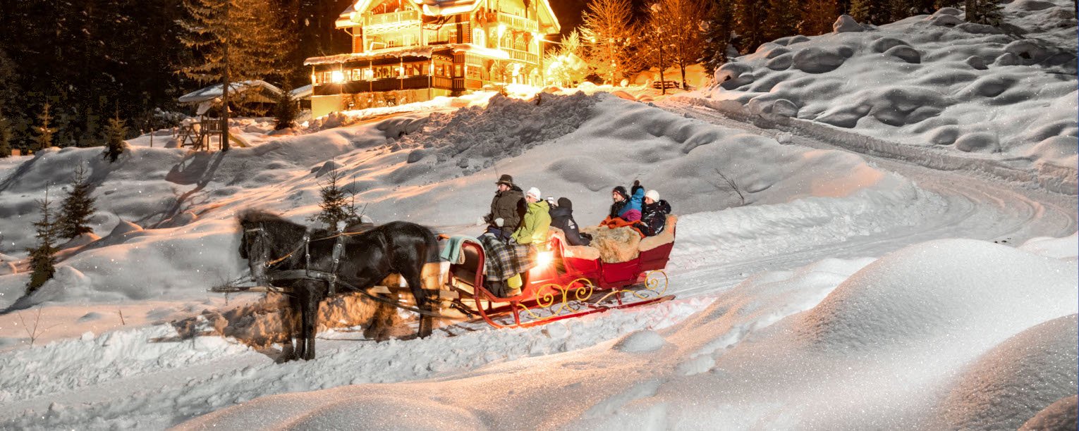 Die Kulinarische Winterreise führt Sie auf eine malerische Tour durch das verschneite Kötschachtal, kombiniert mit einer Fackelwanderung und Pferdeschlittenfahrt – ein Genuss für alle Sinne.