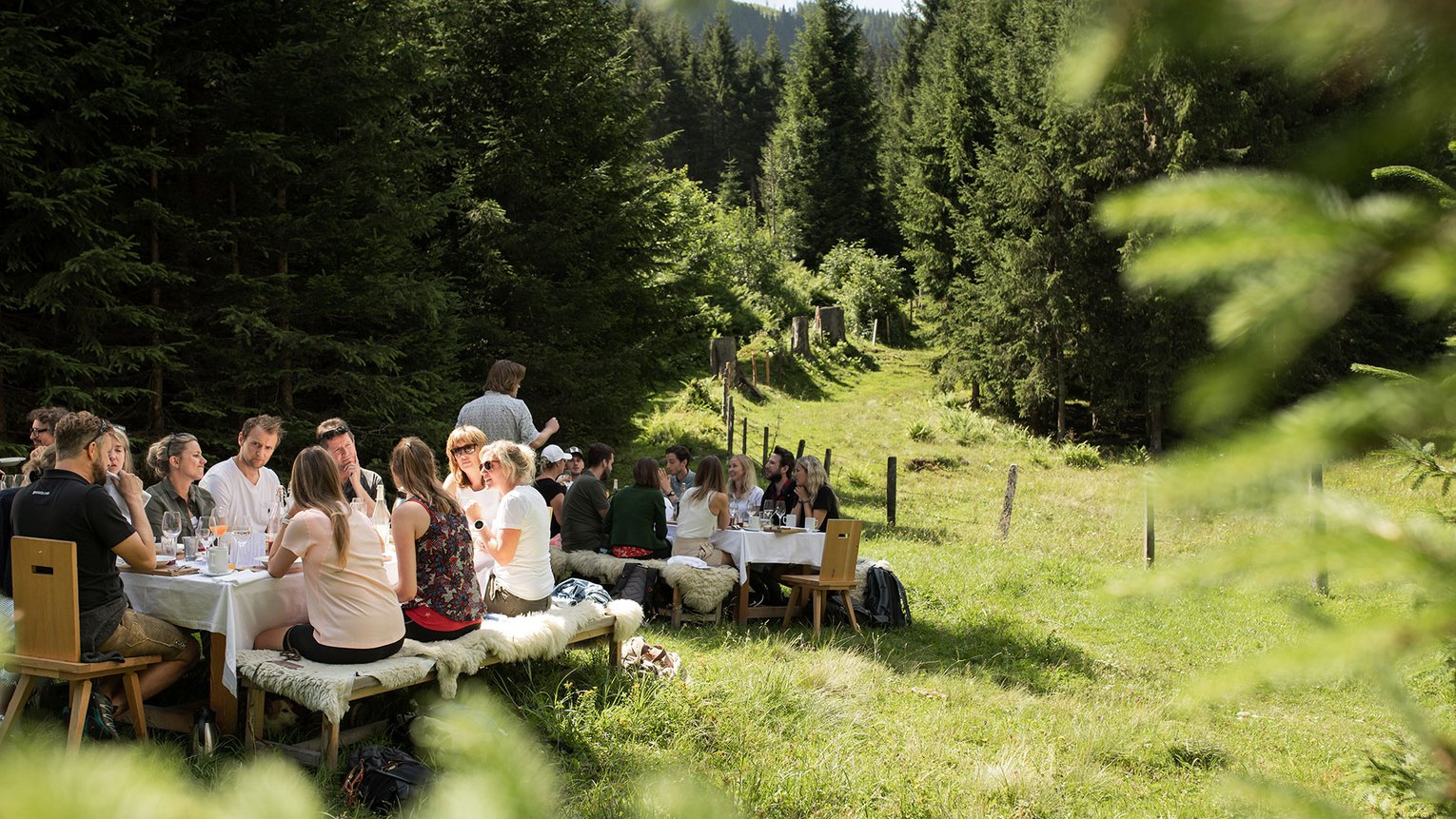 Beim Wald:Brunch im Angertal verbinden sich Frühstück und Mittagessen zu einem echten kulinarischen Erlebnis – mitten im Wald! Nach einer rund 30-minütigen Wanderung durch die schöne Natur in der Nähe von Bad Hofgastein werden Sie beim Wald:Brunch mit einem 7-Gänge-Menü verwöhnt.
