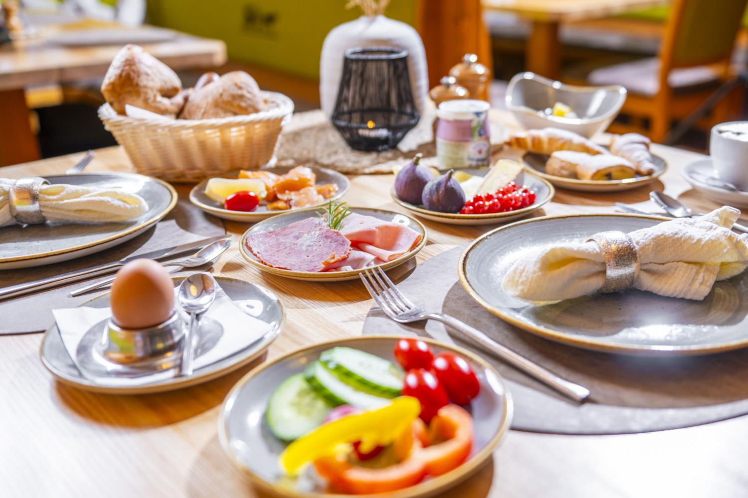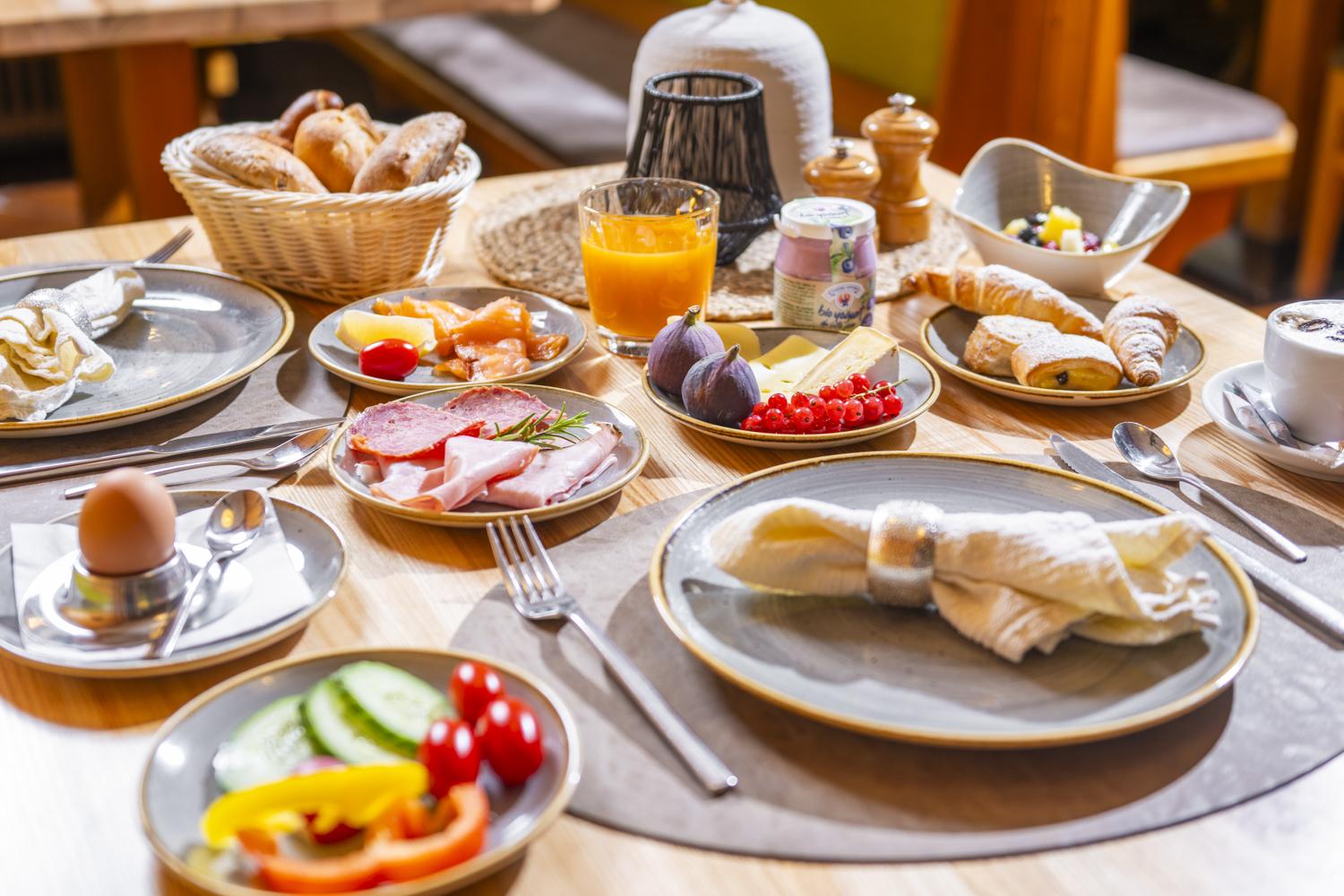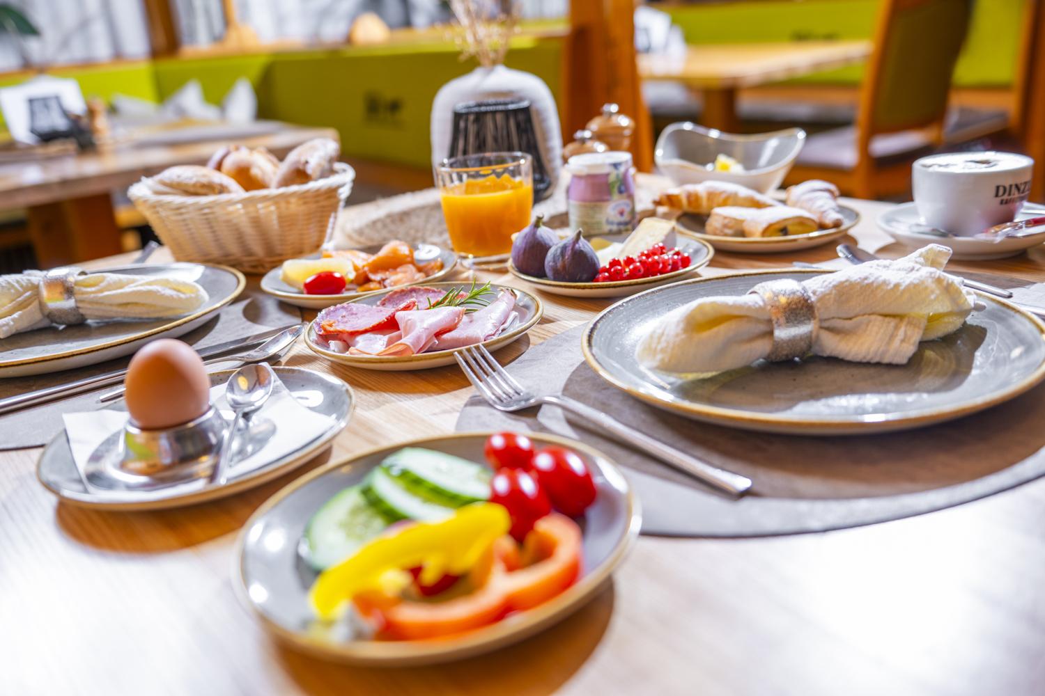 Genießen Sie den **Geruch frisch zubereiteter Hausmannskost** bei unserem eigenen Restaurant, wo sowohl **vegetarische** als auch traditionelle **Küche** auf der Speisekarte stehen. Beginnen Sie Ihren Tag mit einem reichhaltigen **Frühstücksbuffet**, das gesund und schmackhaft ist. Entspannen Sie im **Ruhe- / Relaxingraum** oder der **Sauna**, und tanken Sie neue Energie in der **Infrarotkabine**.
