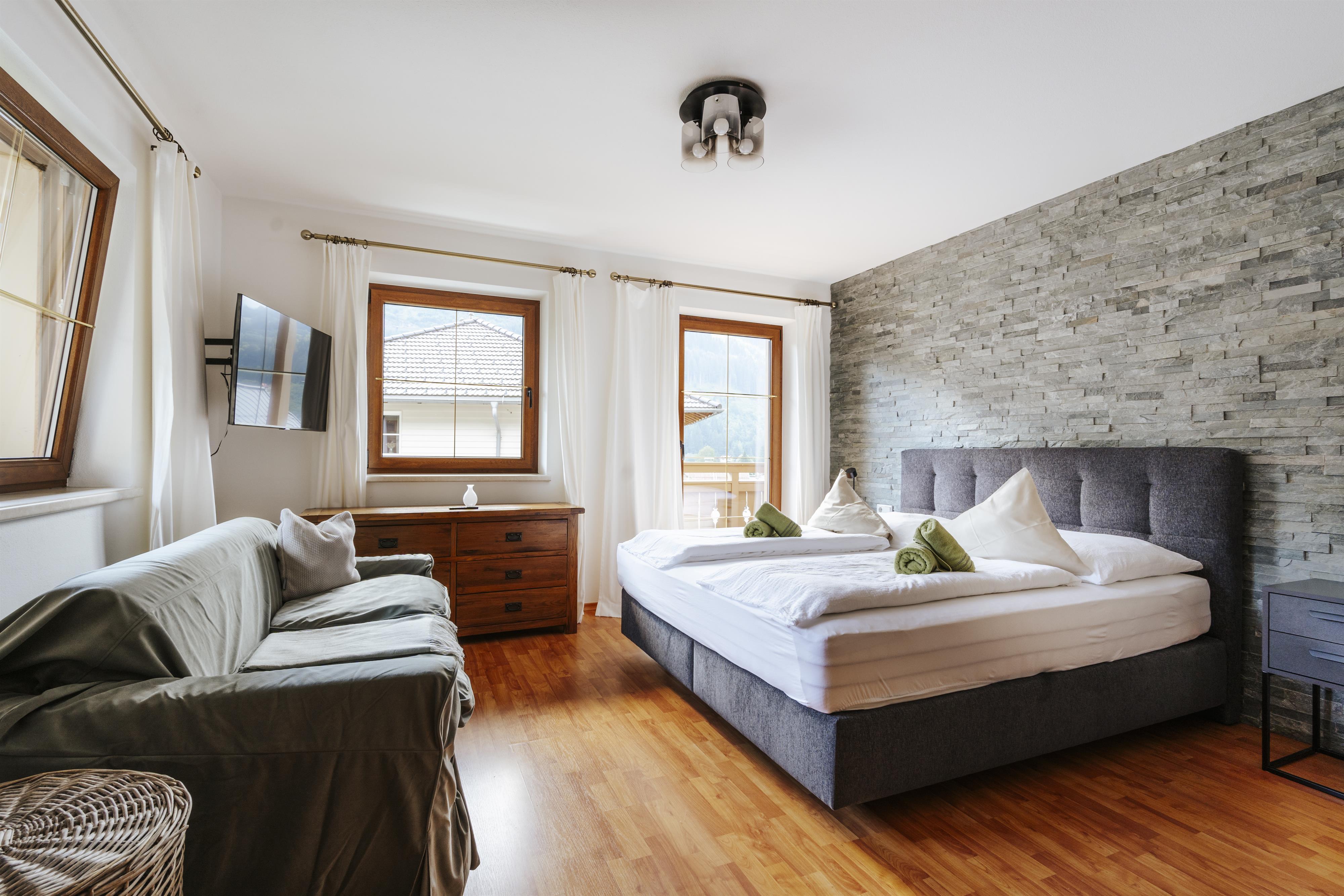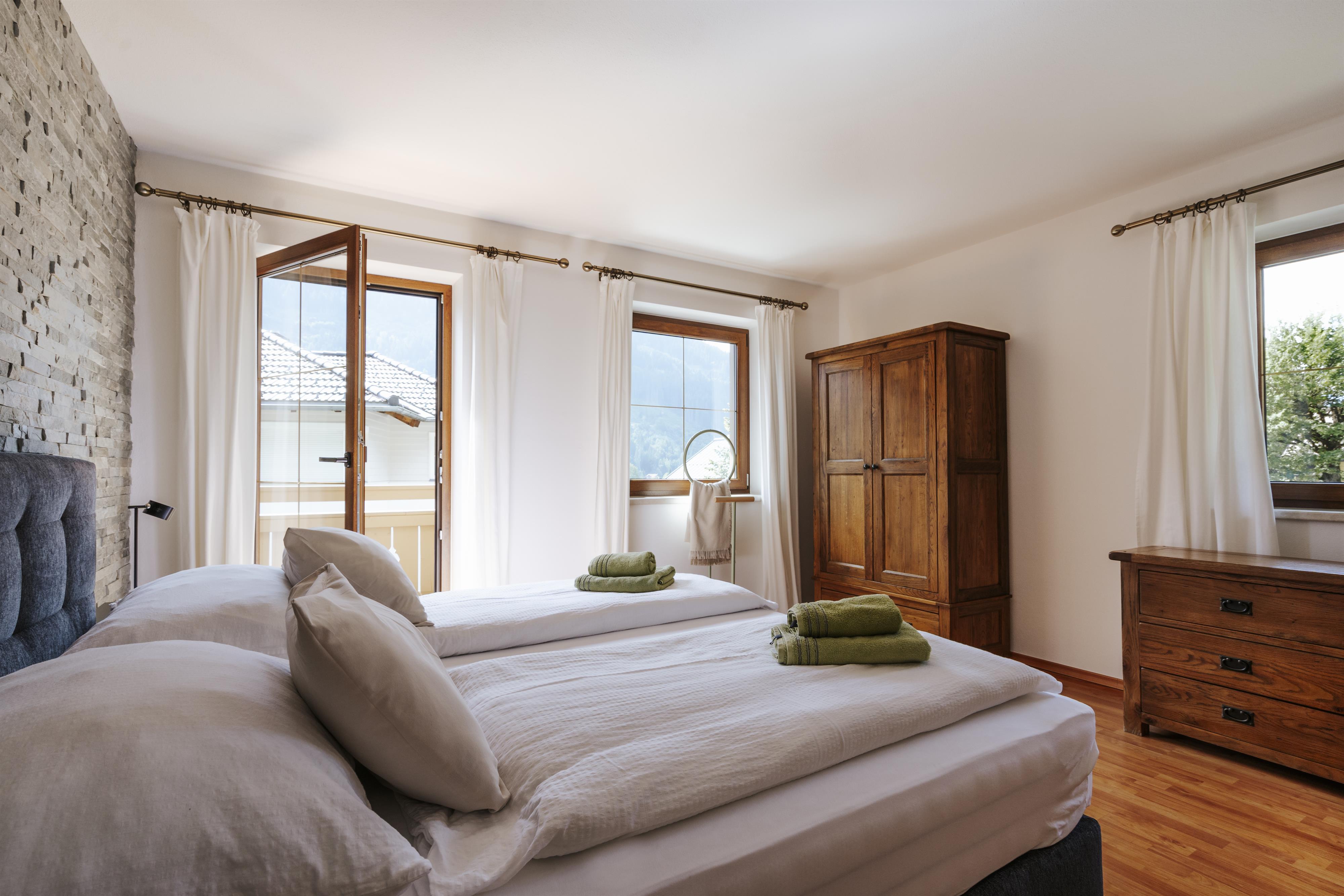 Unser top ausgestattetes, ruhiges Ferienhaus Florianiweg C für 8 Personen besticht durch eine wunderschöne Sonnenterrasse mit Whirlpool, finnischer Fass-Sauna, Garten und traumhaften Blick auf die Berge. Das Nichtraucher-Haus begeistert mit einem großzügigen Wohn-Esszimmer mit moderner Einbauküche inkl. Essbereich sowie gemütlicher Sofagarnitur mit Schweden-Holzofen und Gäste WC. Im Obergeschoss befinden sich 2 Doppelzimmer mit Doppelbett, Balkon & en-suite Badezimmer (Dusche/ Wanne/ Doppelwaschbecken/ WC/ Bidet) und im Untergeschoss befinden sich 2 Doppelzimmer mit Doppelbett inkl. en-suite Badezimmer (Dusche/ Wanne/ Doppelwaschbecken/ WC/ Bidet). WLAN ist gratis!