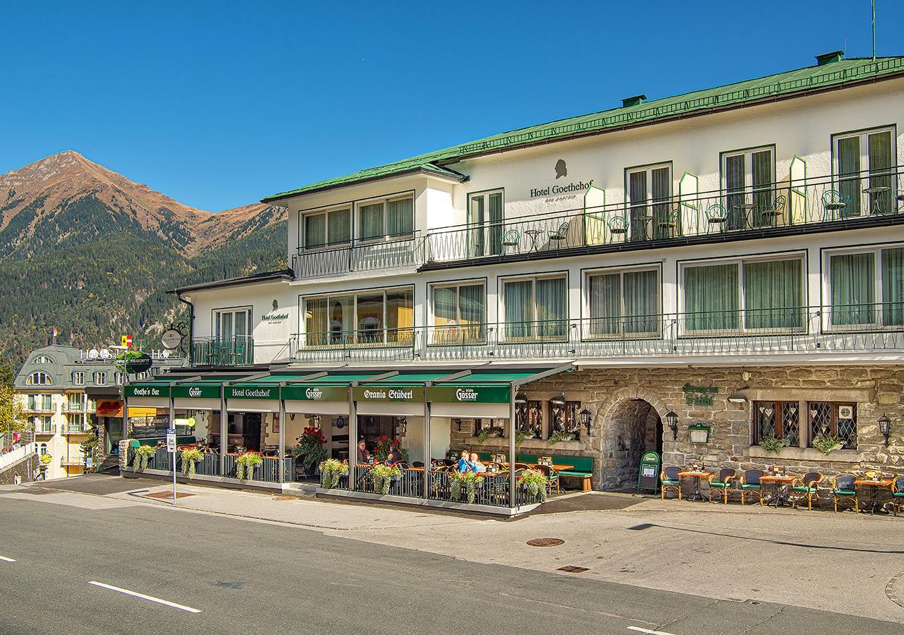 Das ** Hotel Goethehof ist seit 2019 im Besitz der Firma Janus Hotelbetriebs GmbH und überzeugt mit seiner sehr zentralen, aber dennoch ruhigen Lage. Das Hotel befindet sich in unmittelbarer Nähe zum Bahnhof und ist nur 3 Gehminuten von der Felsentherme Bad Gastein und 5 Gehminuten von der Gondelbahn Stubnerkogel entfernt.