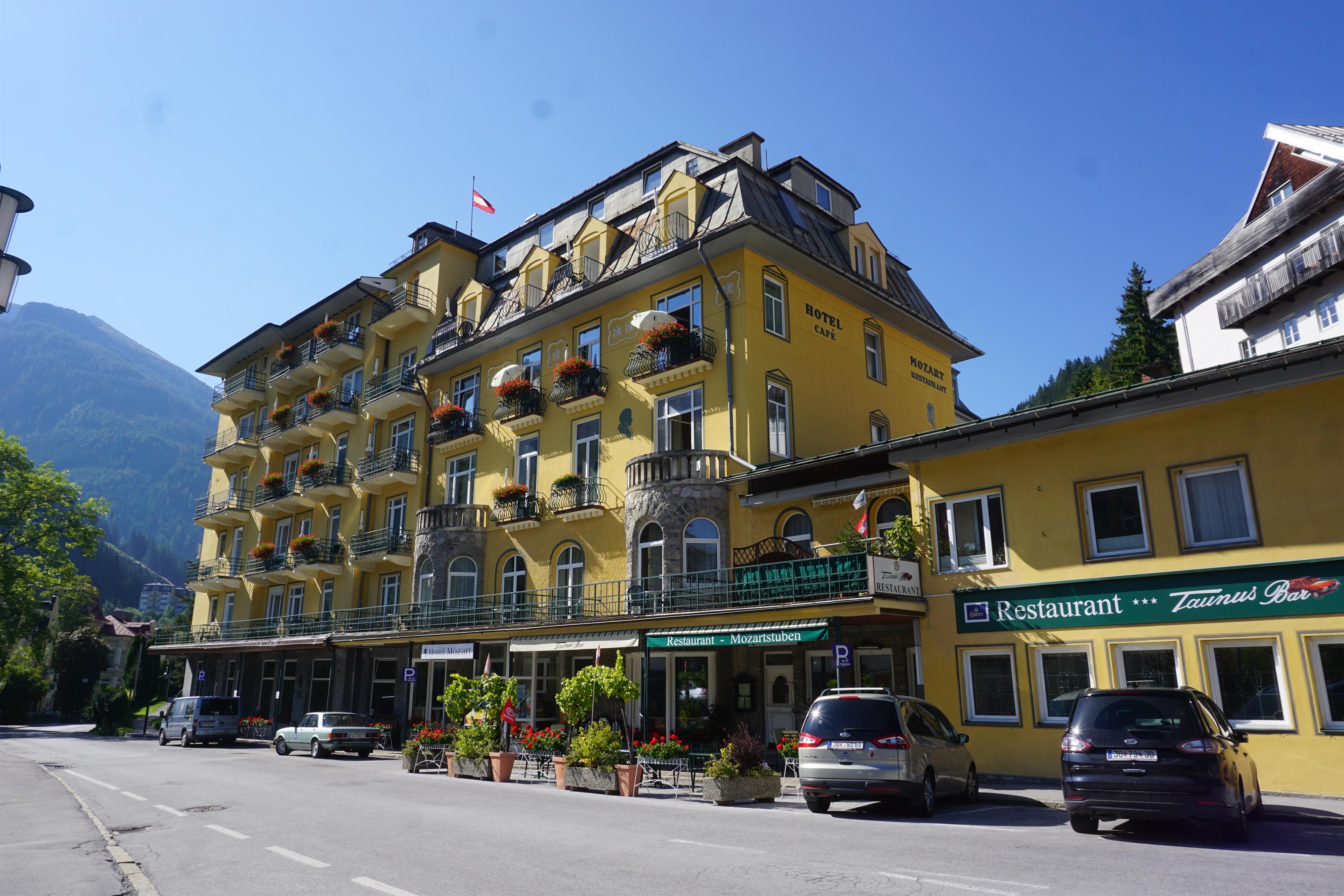 Das Hotel Mozart liegt im historischen Ortskern von Bad Gastein, in nicht mal 20 m Entfernung von der Bushaltestelle Mozartplatz. Von dort sind es mit dem Bus nur wenige Fahrminuten zur Stubnerkogelbahn und zur Felsentherme Bad Gastein.