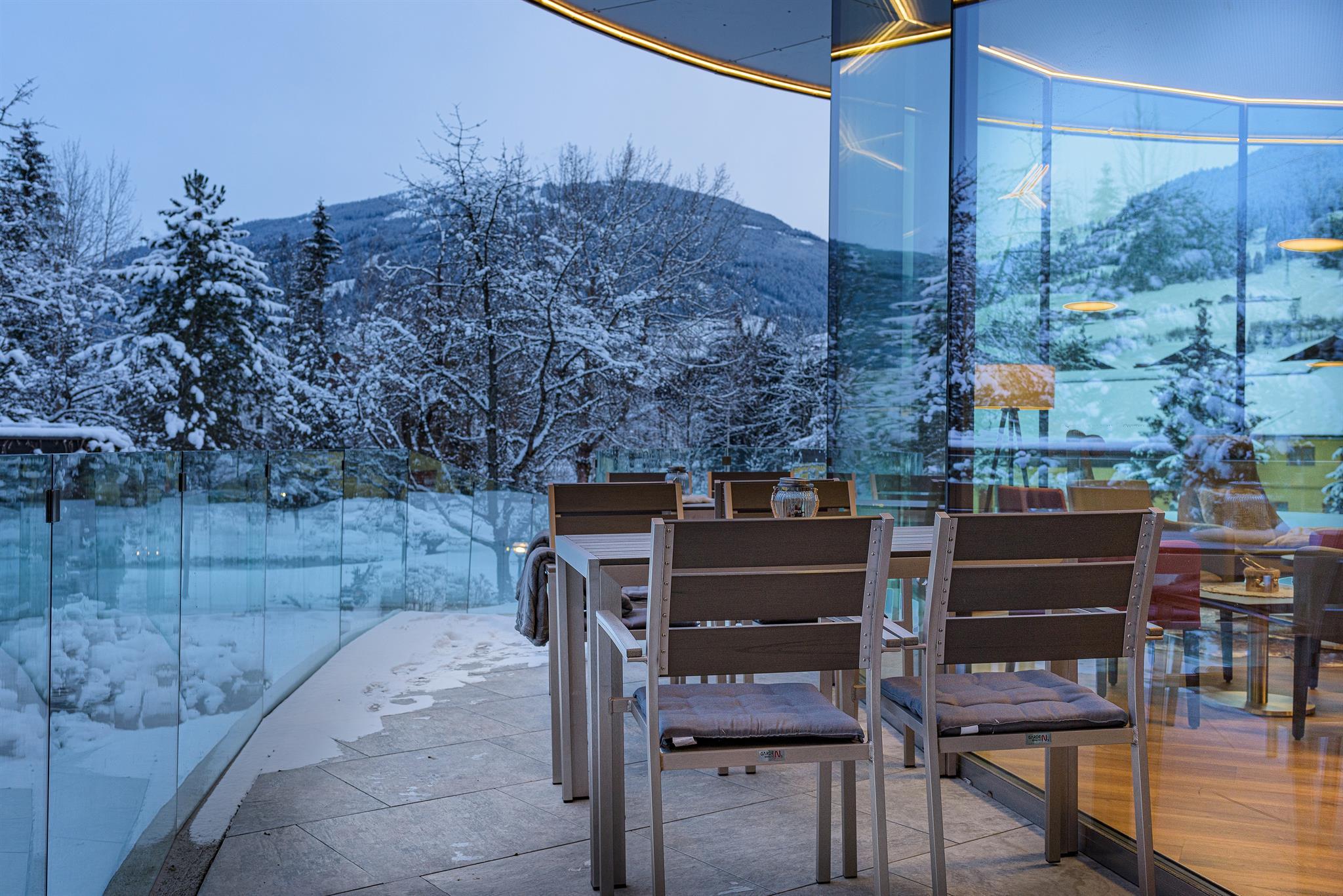 Damit Sie auch im Urlaub bestens umsorgt sind, erwarten wir Sie morgens im hauseigenen Restaurant mit einem reichhaltigen Frühstücksbuffet. Am Nachmittag verwöhnen Sie sich mit Kuchen, bevor Sie beim Abendbuffet mit Themenabenden nach Herzenslust schlemmen können. Aktive Urlaubstage lassen Sie bei einem edlen Tropfen an der Hotelbar, umrahmt von Live-Musik ausklingen. Die neue Panoramalounge liefert wahres Naturerlebnis - auch an den kalten Tagen.