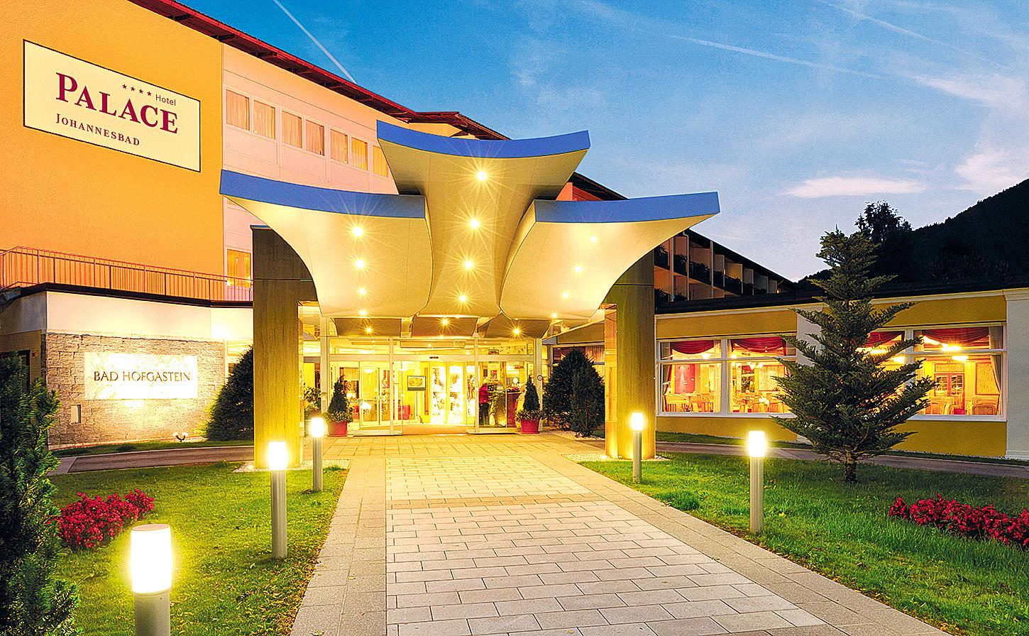 Umgeben von der Bergwelt des Salzburger Landes, erwarten Sie im 4 Sterne Johannesbad Hotel Palace im Zentrum von Bad Hofgastein unvergessliche Urlaubsmomente. Lassen Sie den Stress hinter sich und genießen die Natur im Hotelgarten mit Parkanlage. Auch für Ihren Aktivurlaub im Salzburger Land eignet sich das Johannesbad Hotel Palace ideal. Ein Skibus bringt Sie direkt vom Hotel aus in wenigen Minuten auf die Pisten Gasteins. Die Talstation des Skigebiet Schlossalm liegt nur wenige Gehminuten entfernt. Wander- und Radwege, sowie die Alpentherme Bad Hofgastein erreichen Sie in wenigen Gehminuten. Für Ihren Kuraufenthalt im Gasteiner Heilstollen wäre ein Transfer gerne möglich.