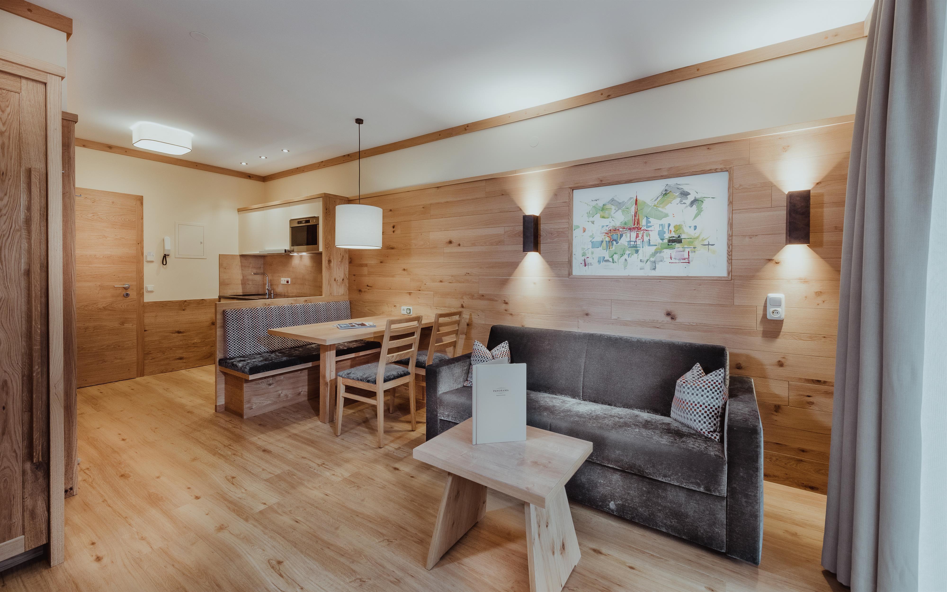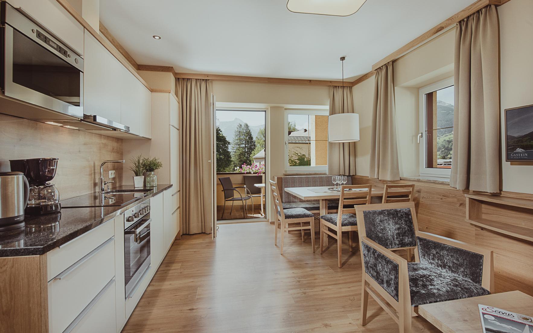 Lovingly furnished in modern style, the 27 apartments in the Panorama apartment hotel come with an elevator and invite guests to relax and unwind after an active day in the mountains of Gastein. Across up to 65m², we hereby offer sufficient space for 2-5 people. In the fully equipped kitchen you can whirl up regional dishes and enjoy the evening sun with a good glass wine on the balcony that offers breath-taking views of Gastein’s mountain world. The separate bedrooms, as well as the open dining and living area, all come with a flat screen TV.