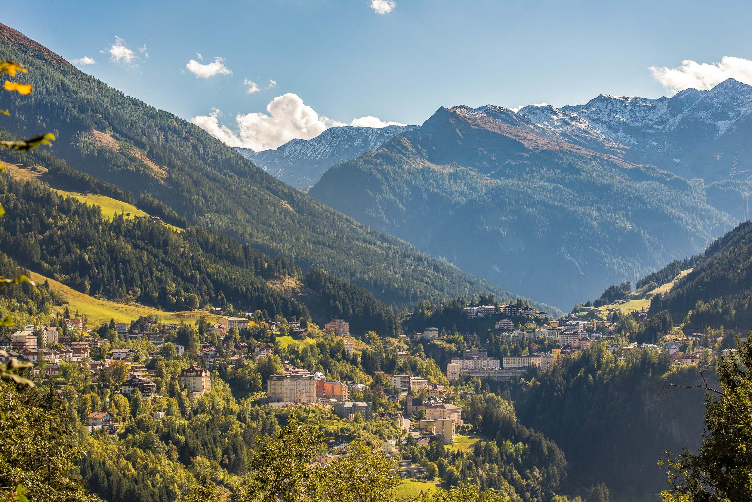 Bad Gastein-in the small town Bad Bruck (Hotelroute–red arrow). Turn to the left here. Follow the road for 2 km, turn right after the bridge via the Gasteiner Ache. After another 100m on the left: EUROPÄISCHER HOF.