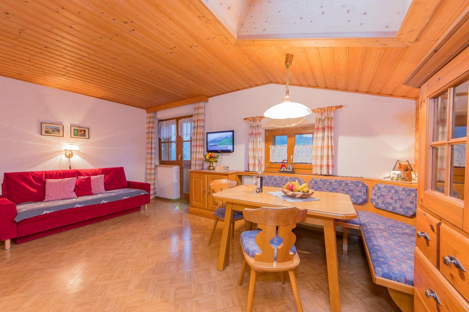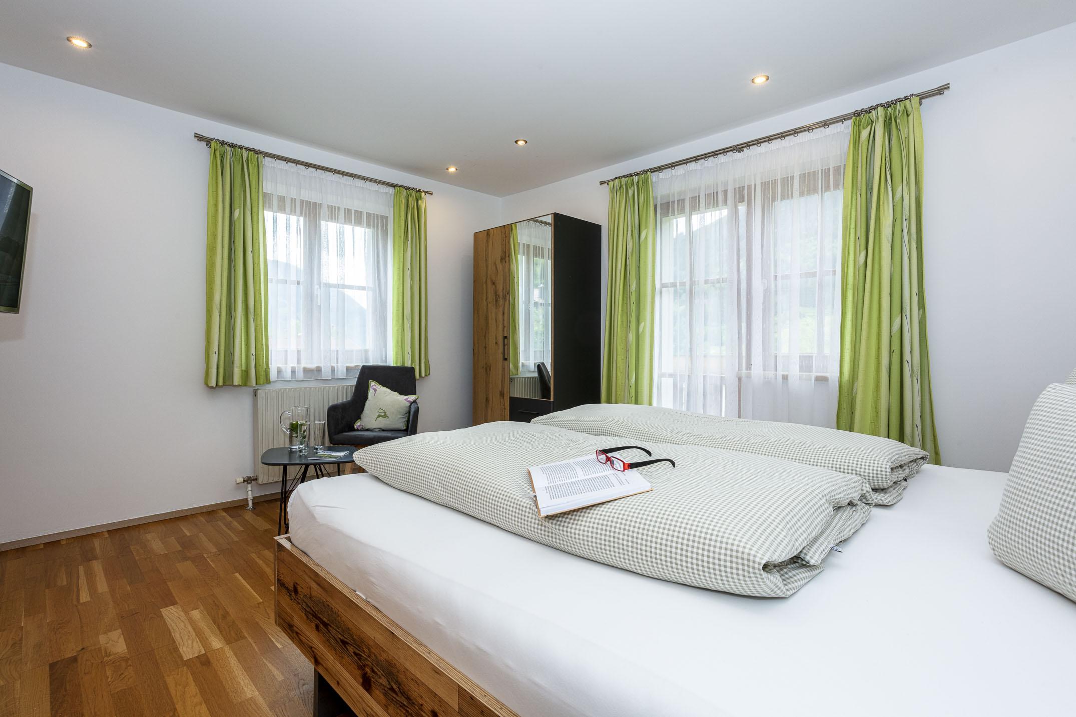 Vacation at the Stoffbauer farm – a holiday paradise for the whole family. In our 42m2 Bernkogel apartment for 2-4 people and in the 50m2 Schuhflicker apartment for 2-5 people, you will find a fully equipped kitchen with electrical stove, baking oven, dishwasher, coffee machine, toaster and egg boiler. In your couple’s vacation you are awaited by cosy double rooms that just like the two apartments all come with a private balcony, where you can end an active holiday enjoying the last sun. A lovingly prepared breakfast buffet is available to you between 7:30 and 9:30am. On request, we are happy to pamper you with our fresh roll service in the morning.
