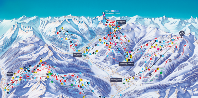 Die interaktive Karte zeigt Gastein auf einen Blick: Wanderwege, Thermen, Restaurants, Almhütten und vieles mehr – ideal zum Stöbern und Planen.