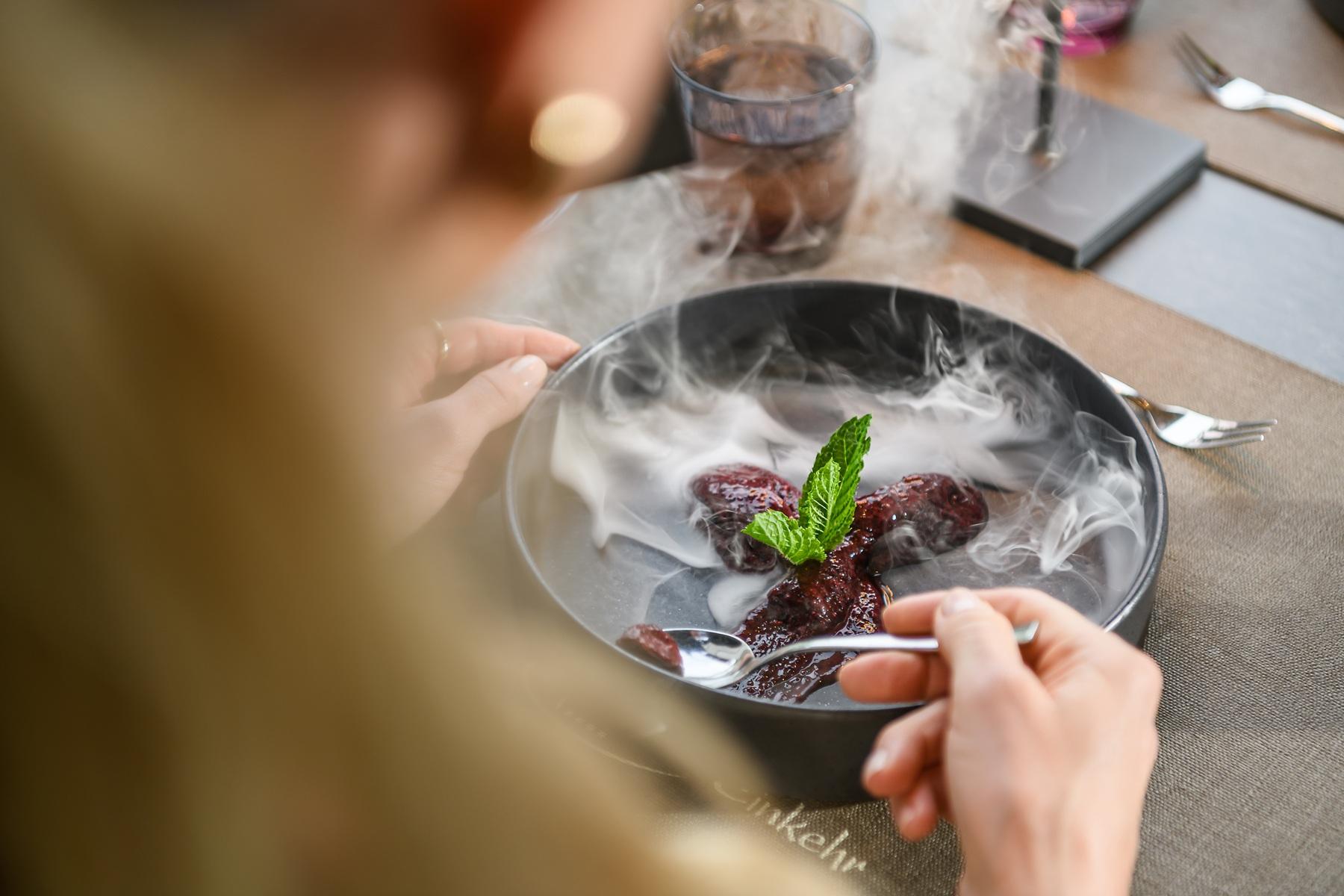 Gerne können Sie gegen Voranmeldung in der Zeit von 18.30 bis 20.30 Uhr bei uns speisen. Serviert wird das 4-Gang-Wahlmenü unserer Hausgäste