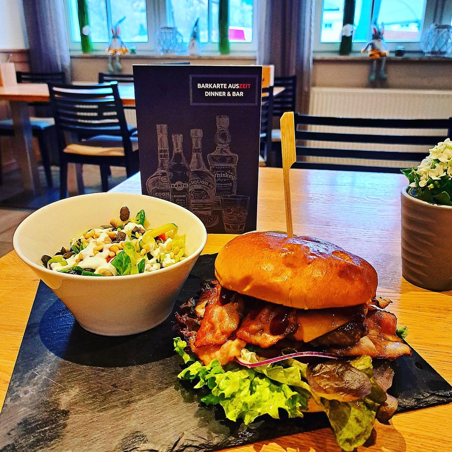 Neben hausgemachten Pizzen und unseren Spezialburgern haben wir auch eine reiche Auswahl an Salaten, Nudeln und Fleischgerichten.