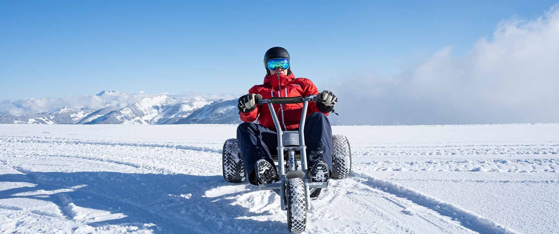 Wer glaubt, Mountaincarts seien nur ein Sommerabenteuer, wird in Dorfgastein überrascht. Am Fulseck wartet in der kalten Jahreszeit die Wintervariante: Mit speziellen Reifen geht es frühmorgens vor dem Skibetrieb auf verschneiten Wegen ins Tal. Beim „Early Winter Mountaincart“ flitzen Sie bereits bei Sonnenaufgang durch die winterliche Landschaft. Ein außergewöhnlicher Kick für alle, die Abwechslung zum klassischen Wintersport suchen.