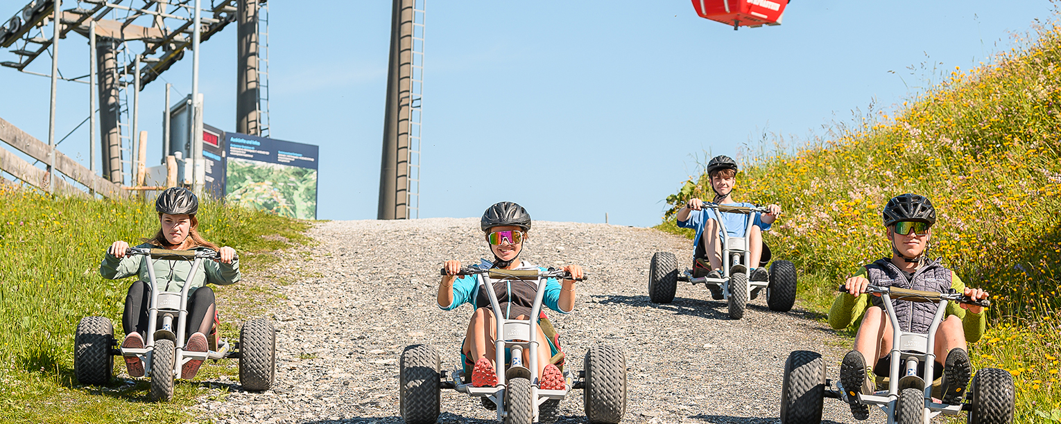 Die stabilen Carts mit breiten Hinterrädern und leistungsstarken Scheibenbremsen sorgen für ein sicheres und zugleich dynamisches Fahrgefühl. Vor jeder Fahrt erhalten alle Teilnehmenden eine kurze Einweisung, damit das Abenteuer bestens vorbereitet starten kann.