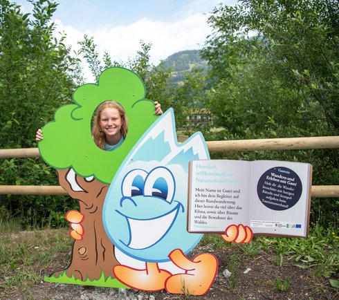 Wer in Gastein wandert, hat meist einen besonderen Begleiter an der Seite: Maskottchen GASTI, der freundliche Wassertropfen. Er taucht an vielen Stellen entlang der Familienwege auf, erzählt spannende Geschichten und begleitet Kinder spielerisch durch die Natur. Ob auf Hinweisschildern, in den Rätselheften oder als kleine Überraschung auf den Erlebniswegen: GASTI motiviert, erklärt und macht jede Wanderung ein Stück spannender.