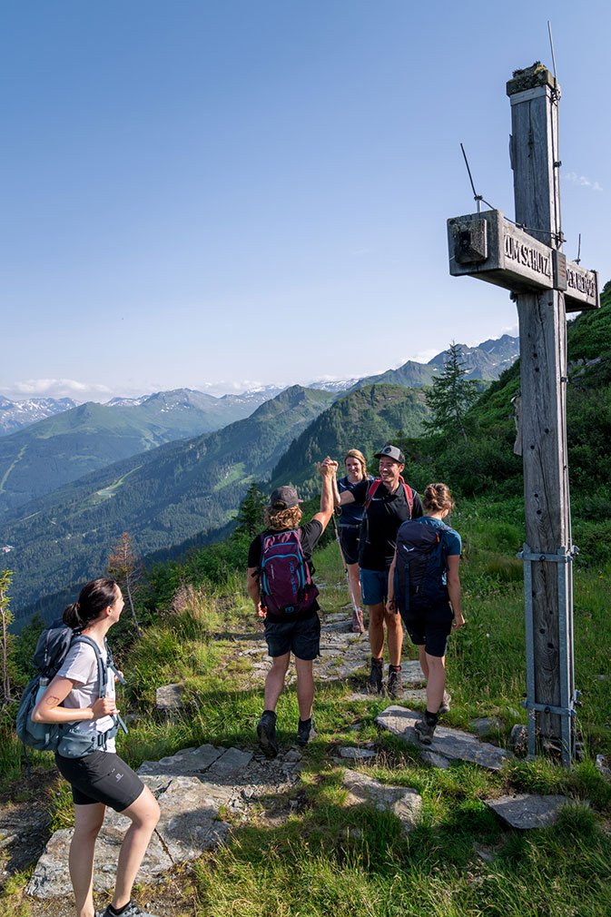 Mit den Dreitausendern im Blick geht es über die Kerscherhütte und den Hytonga-Steig zur Fundner Heimalm. Von dort entlang des Leidalmbachs zur Brandner Hochalm und von der Leidalm zur Kleinen Scharte bis zum Tagesziel bei der Schlossalm Bergstation.