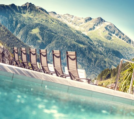 Ausruhen, Entspannen und fließende Bewegungen durchführen in den alpinen Wasser- und Saunawelten der Alpentherme.
